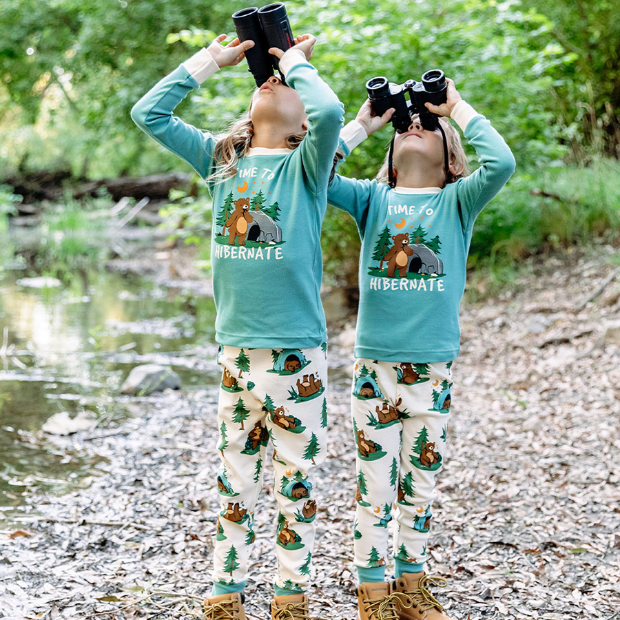Lazy One Warm Long-Sleeve PJ Sets for Girls and Boys, Cozy, Comfy, Funny Kids’ Pajama Sets, Animal, Bear & Moose(Forest Be With You Blue Pajama Sets)
