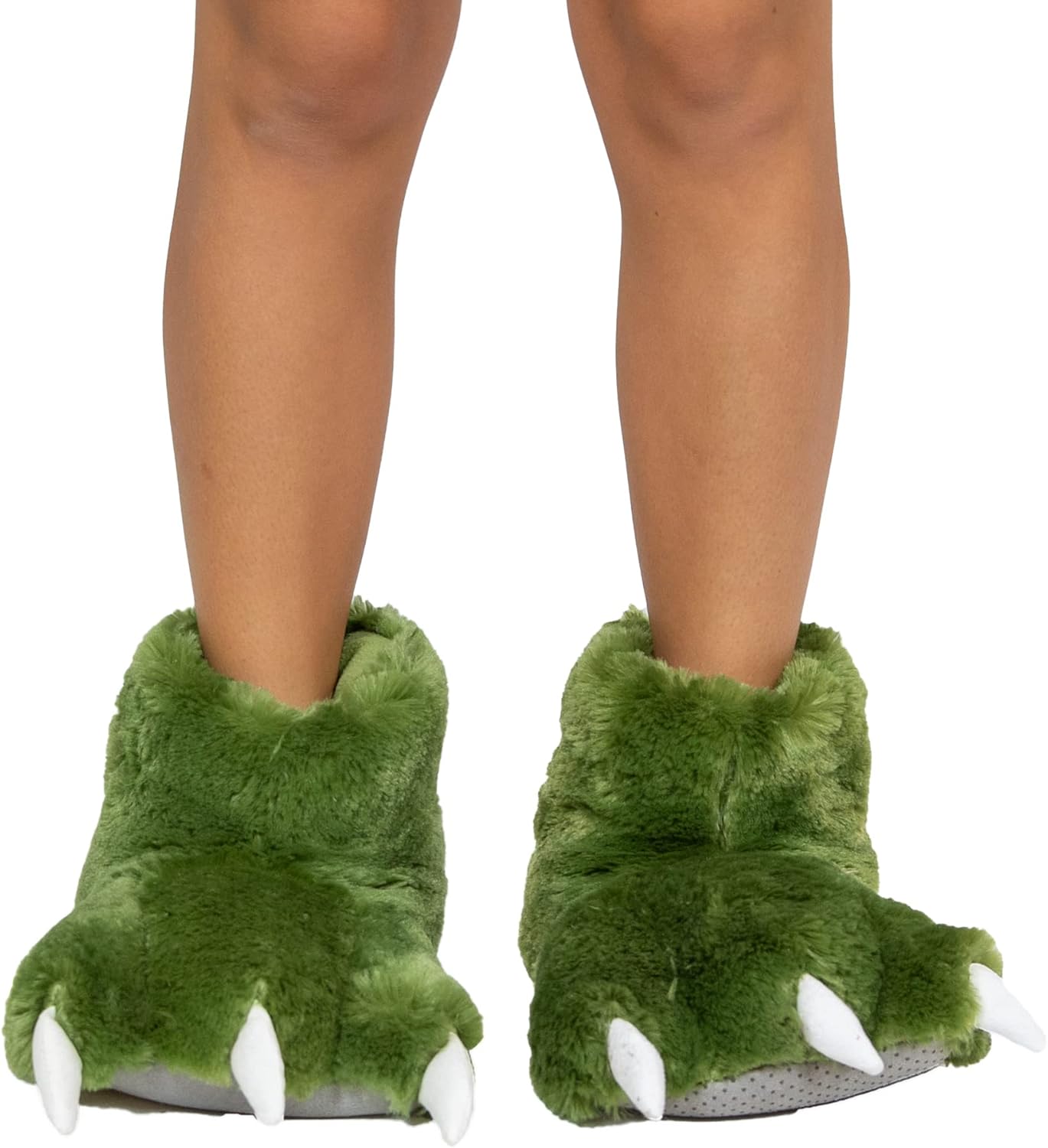 Lazy One Animal Paw Slippers for Kids and Adults Fun Costume for Kids Cozy Furry SlippersGreen Monster Paw Slippers
