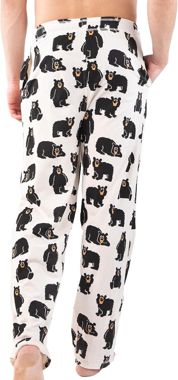 Lazy One Bear & Bigfoot Pajama Pants For Men, Men’s Separate Bottoms, Lounge Pants, Funny, Humorous(Cream)