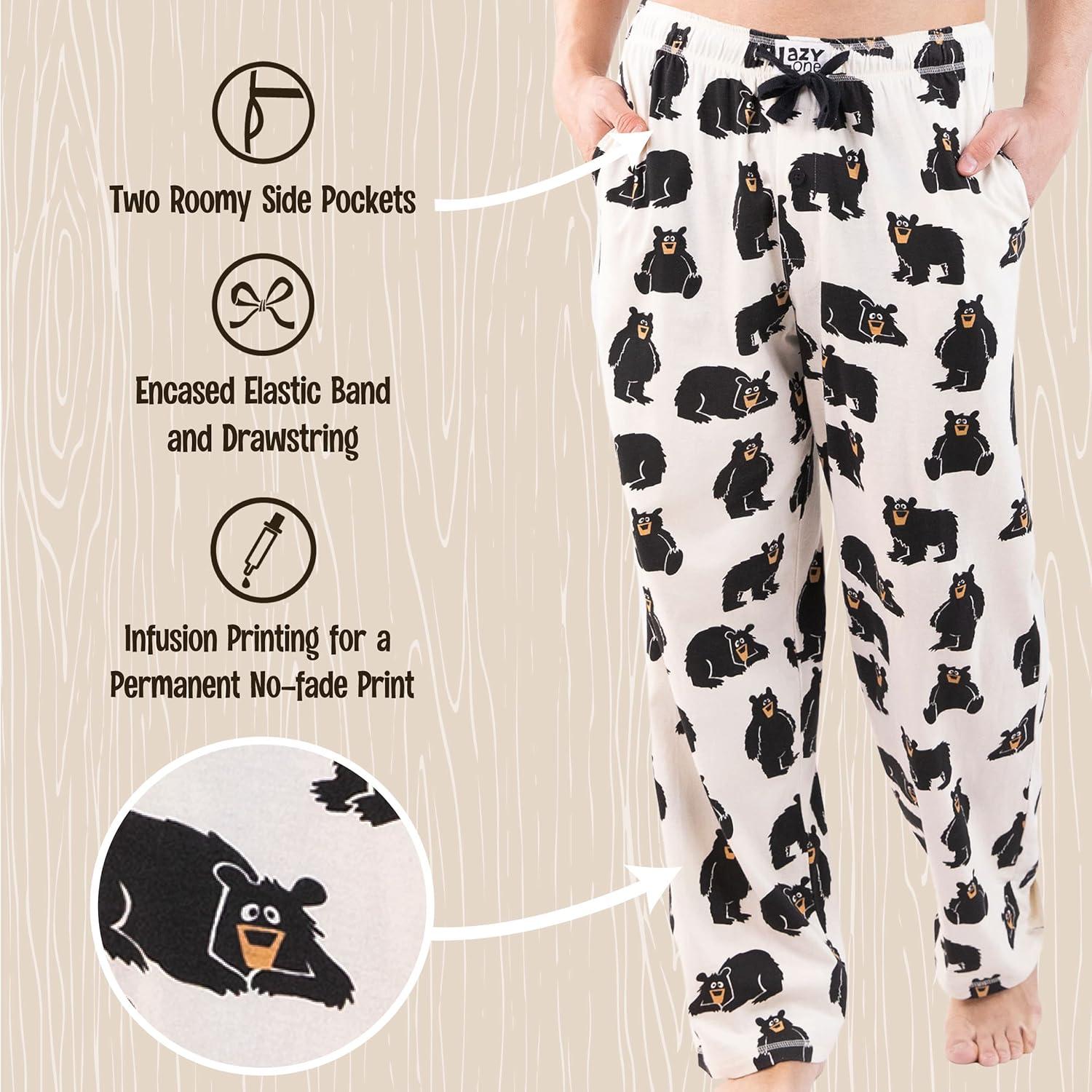 Lazy One Bear & Bigfoot Pajama Pants For Men, Men's Separate Bottoms, Lounge Pants, Funny, Humorous(Cream)