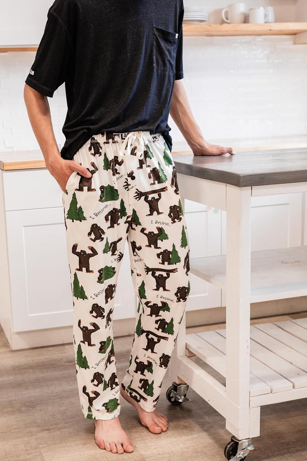 Lazy One Bear & Bigfoot Pajama Pants For Men, Men’s Separate Bottoms, Lounge Pants, Funny, Humorous(I Believe Bigfoot Mens Pajama Pants)