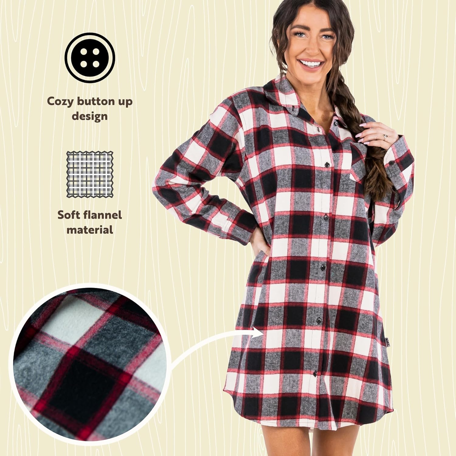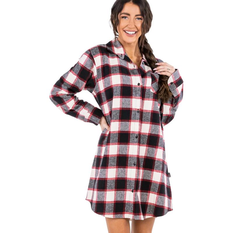 Get more for your money with our exclusive bundle deals on Lazy One Button-Up Sleep Shirt, Flannel Nightshirts for Women, Cute Plaid Designs(Black Plaid Button Down) and accessories.