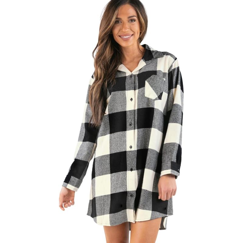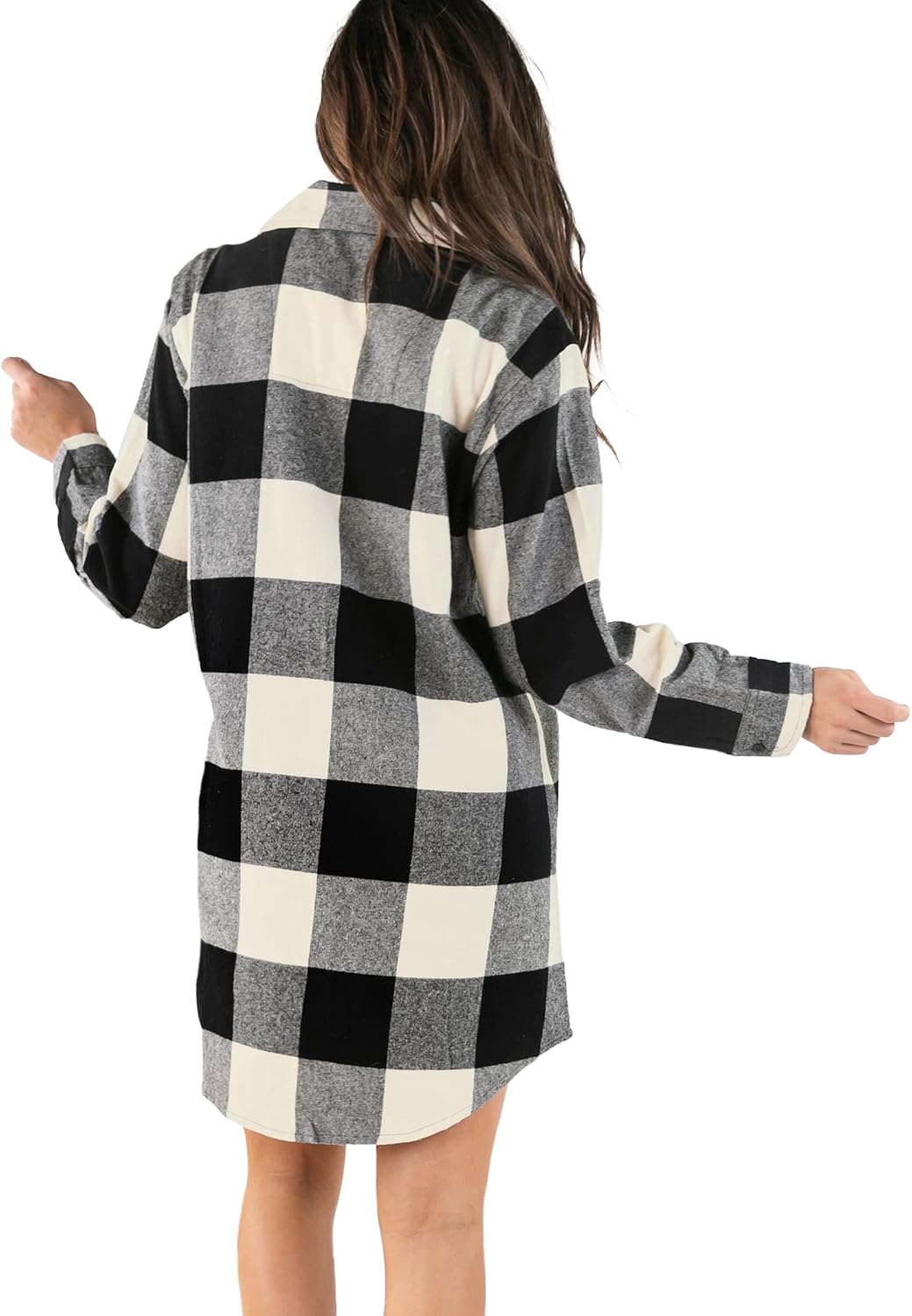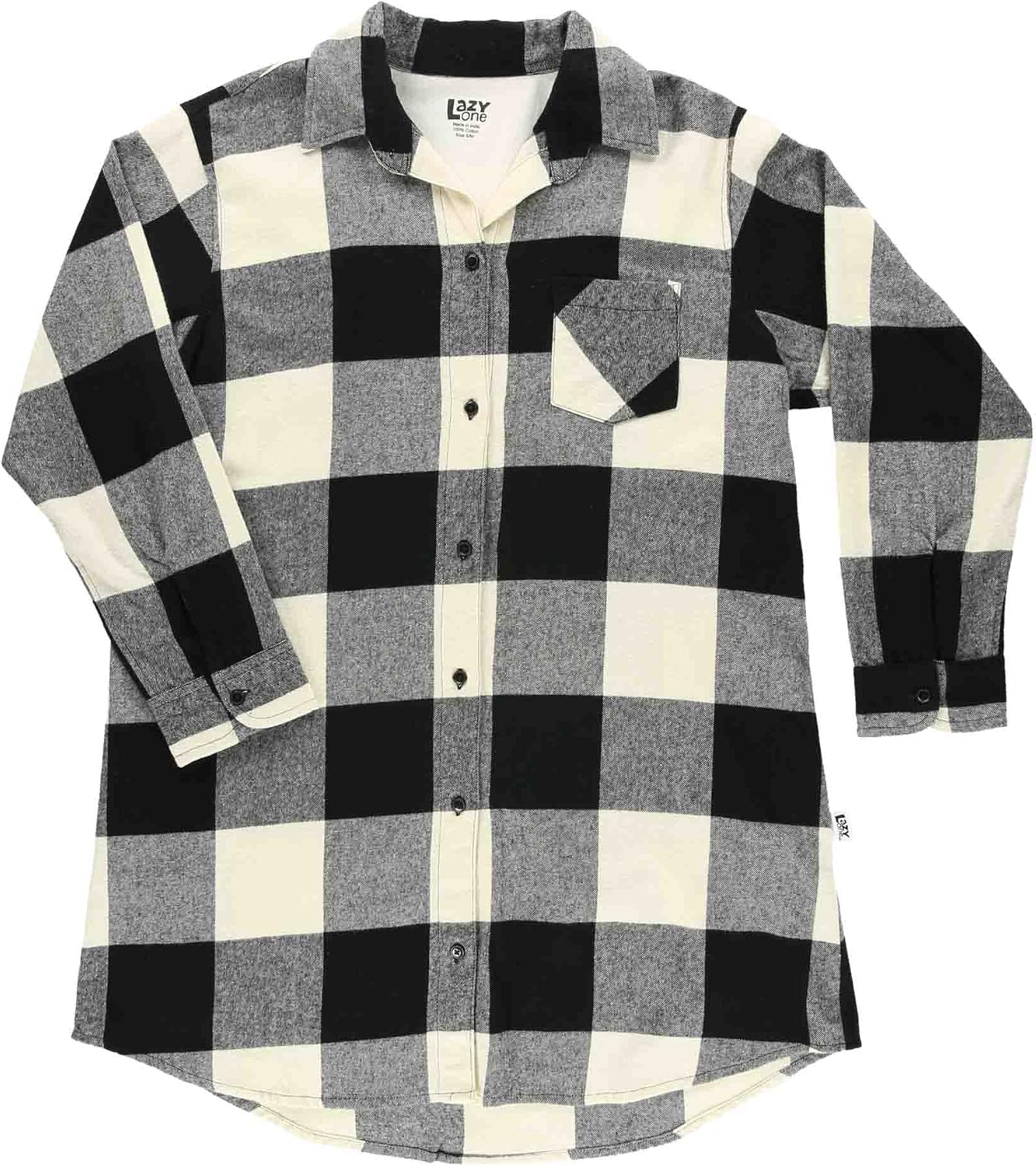 Lazy One ButtonUp Sleep Shirt Flannel Nightshirts for Women Cute Plaid DesignsTruck Plaid Button Down