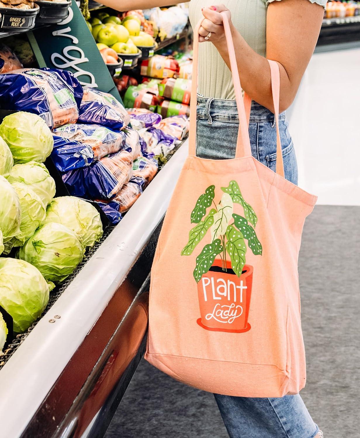 Lazy One Canvas Tote Bag, Novelty Tote Bag for Women and Men, Reusable Shopping Bags, Perfect for Shopping, Travel and Work(Plant Lady)