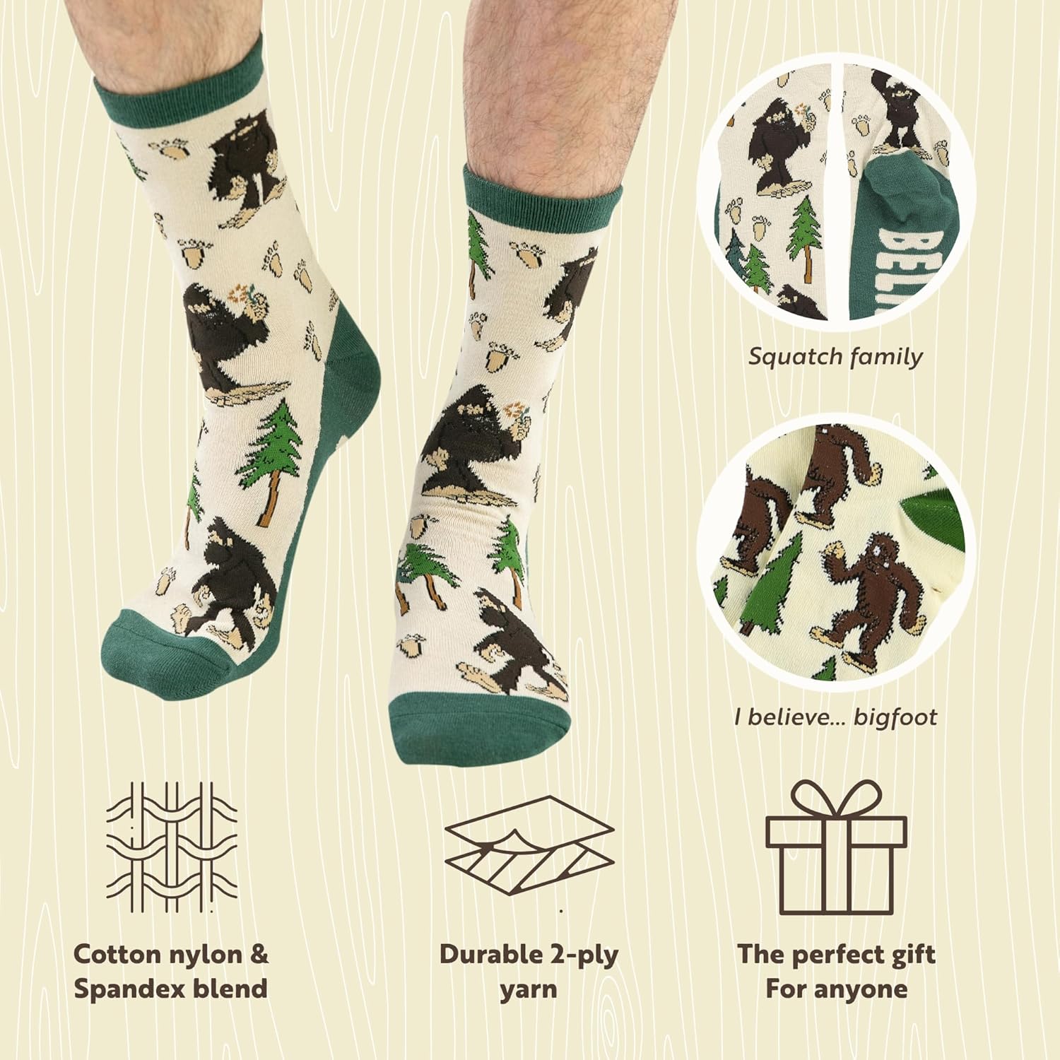 Lazy One CrewLength Funny Socks for Women and Men Crazy Crew Socks with Designs Novelty Socks in Adult Sizes Pack of 2Bigfoot Sock Pack