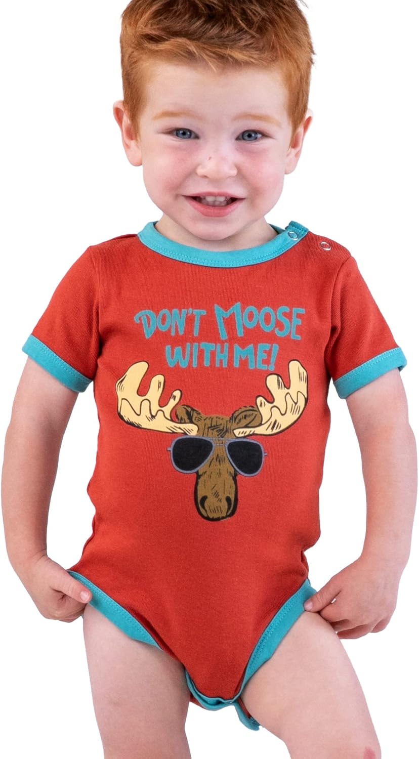 Lazy One Cute Unisex Baby Bodysuit, Cute Animal Designs, 6-18 Months(Don’t Moose Infant One-piece)