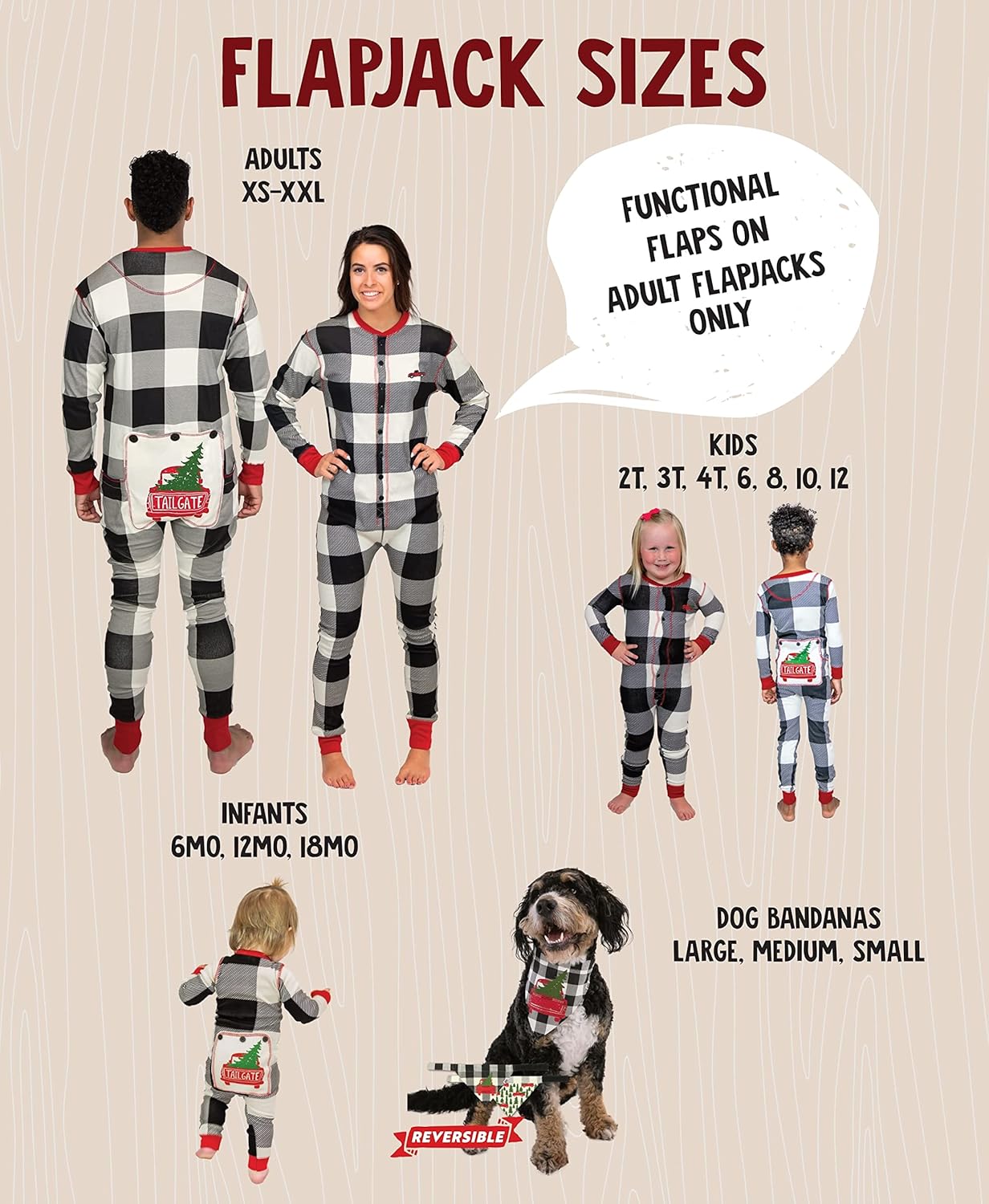 Lazy One Flapjacks, Matching Christmas Pajamas for The Dog, Baby & Kids, Teens, and Adults(Tailgate Flapjack Onesie)