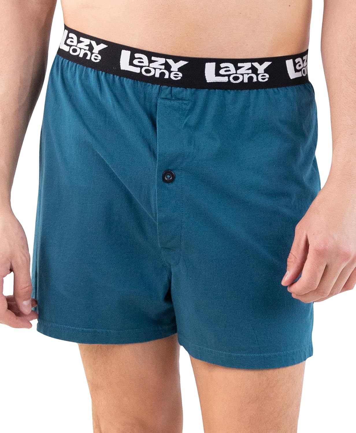 Lazy One Funny Animal Boxers, Humorous Underwear, Novelty Boxer Shorts, Gag Gifts for Men(Blue Lazy Ass)