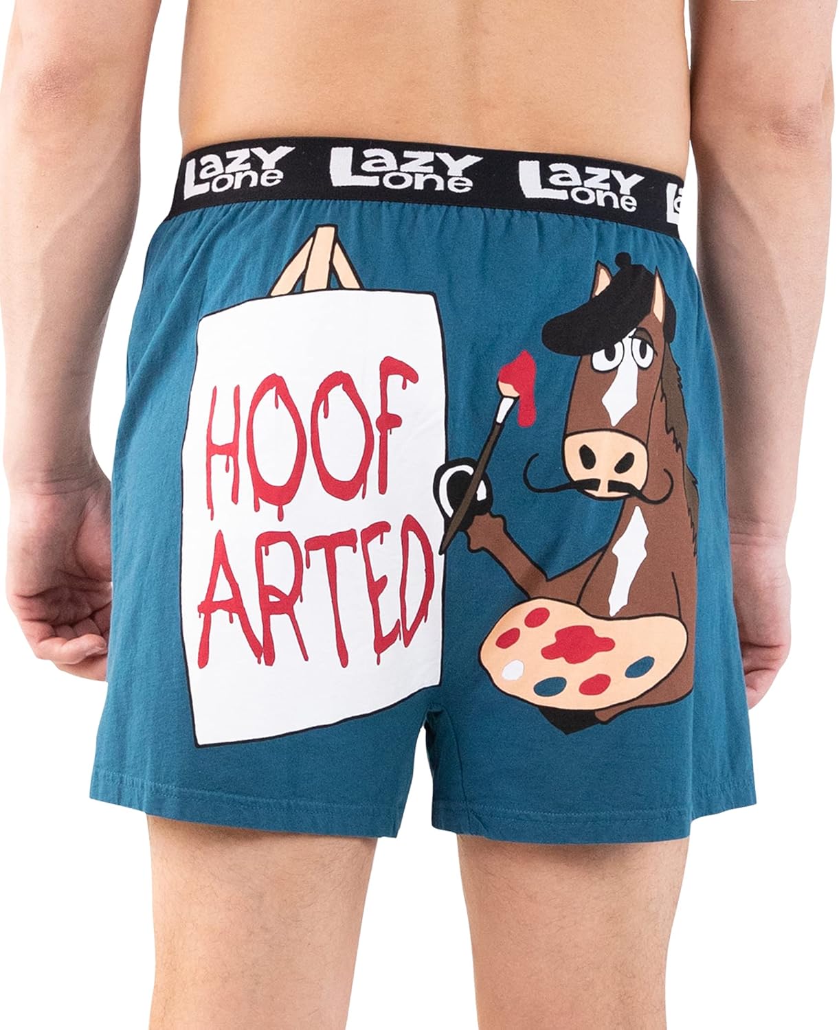 Lazy One Funny Animal Boxers, Humorous Underwear, Novelty Boxer Shorts, Gag Gifts for Men(Blue Hoof Arted? Boxers)
