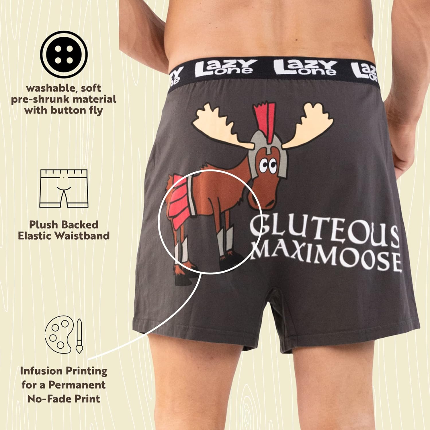Don’t wait, get up to 50% off on Lazy One Funny Animal Boxers, Humorous Underwear, Novelty Boxer Shorts, Gag Gifts for Men(Gluteus Maximoose Gladiator Boxers) during our end-of-season sale event.