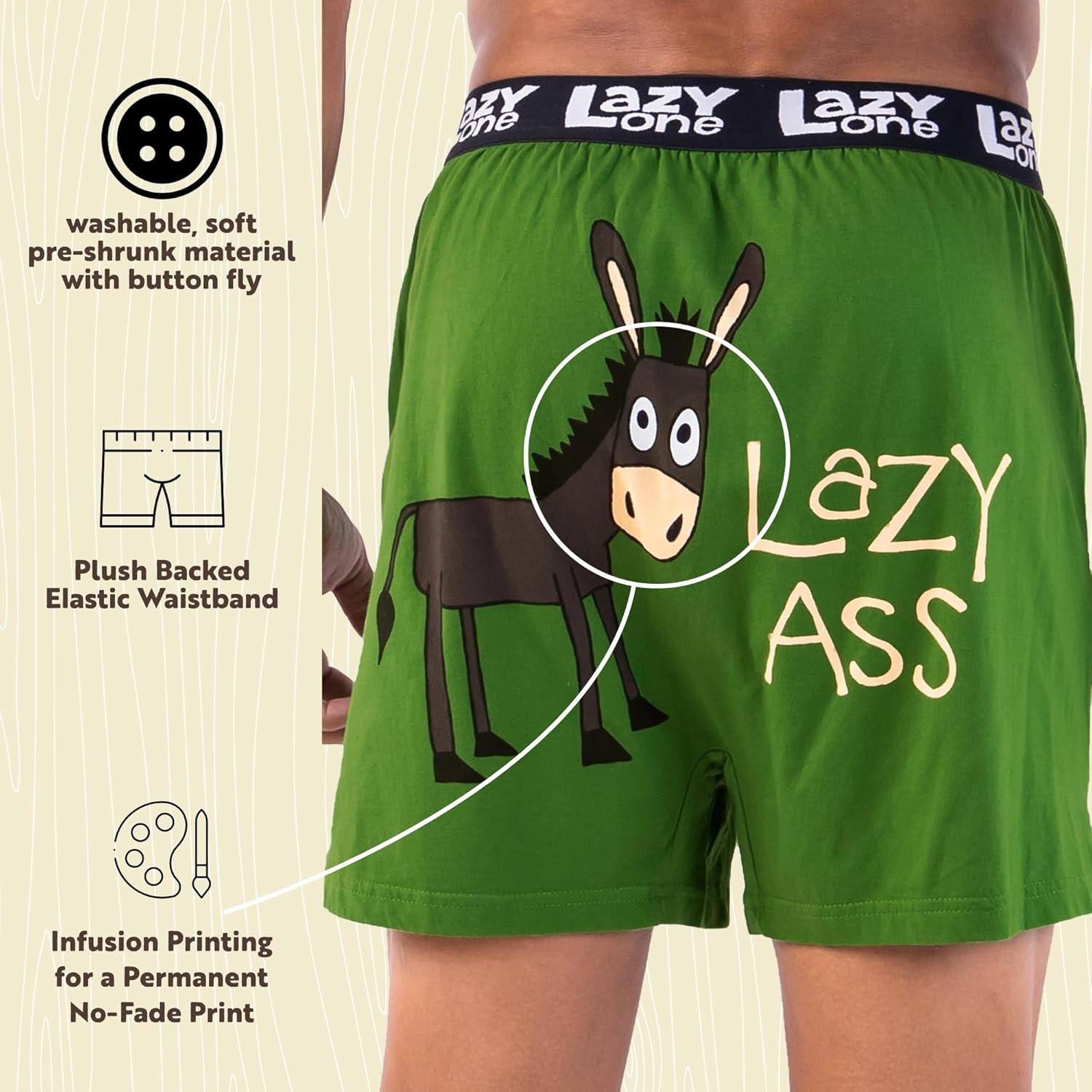 Get the Lazy One Funny Animal Boxers, Humorous Underwear, Novelty Boxer Shorts, Gag Gifts for Men(Green Lazy Ass Boxers) you want at a price you can afford with our markdown sale.