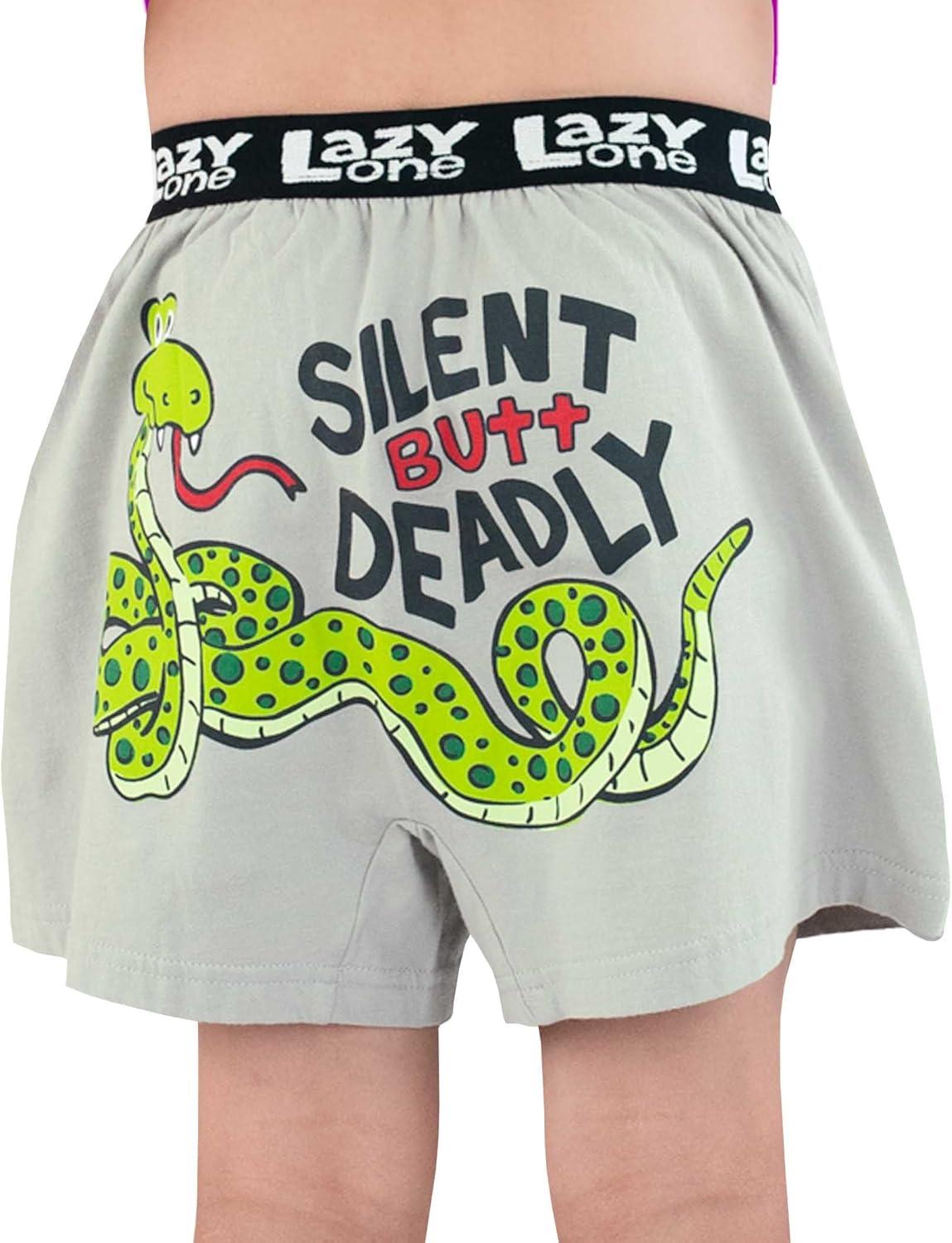 Lazy One Funny Animal Boxers, Humorous Underwear, Novelty Boxer Shorts, Gag Gifts for Men(Silent Butt Deadly Grey Kids Boxer)