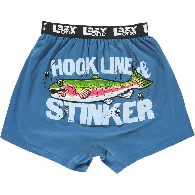 Lazy One Funny Animal Boxers, Novelty Boxer Shorts, Gag Gifts for Men, Humorous Underwear for Men(Hook Line and Stinker Boxers)
