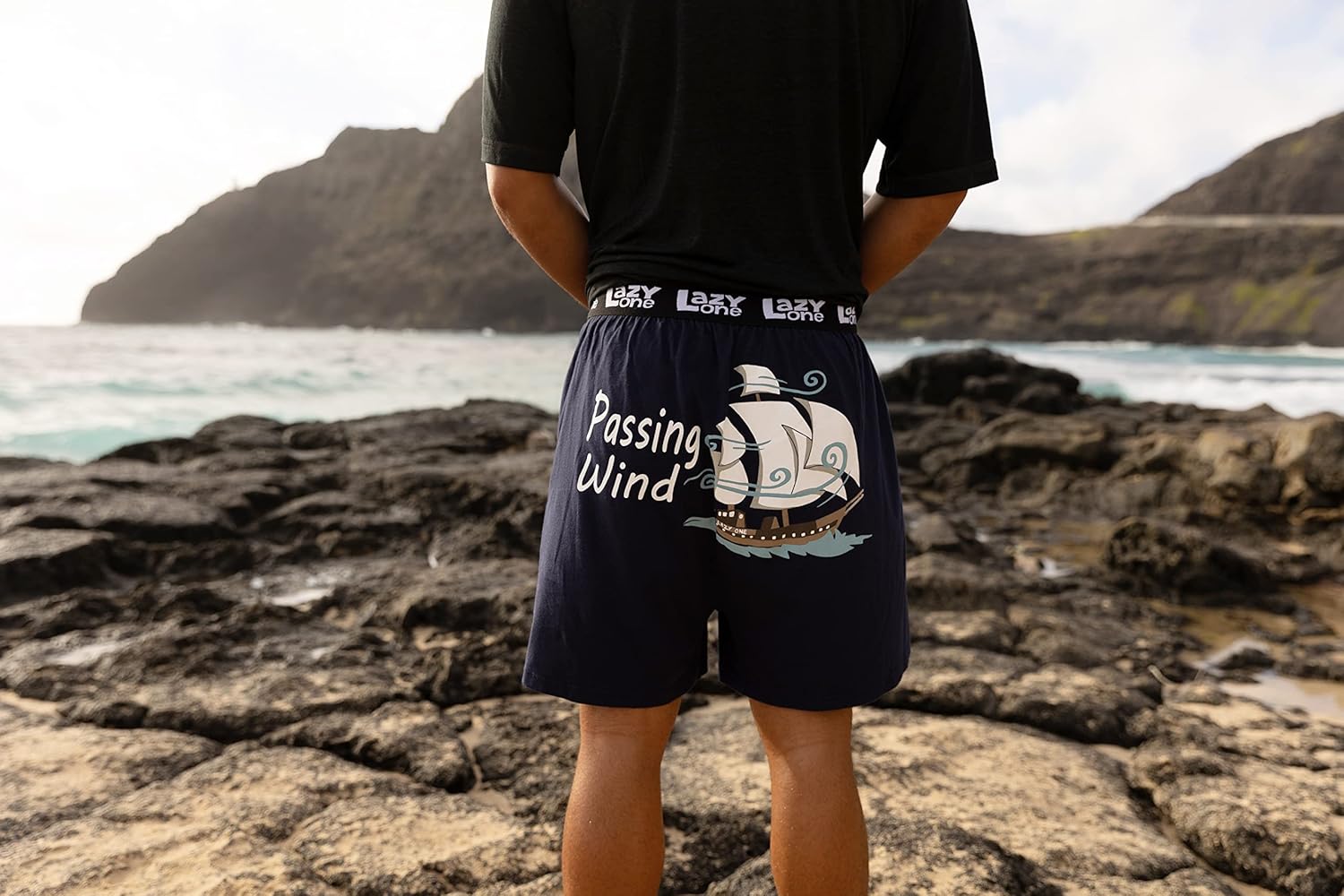 Lazy One Funny Animal Boxers, Novelty Boxer Shorts, Gag Gifts for Men, Humorous Underwear for Men(Passing Wind Blue Boxers)