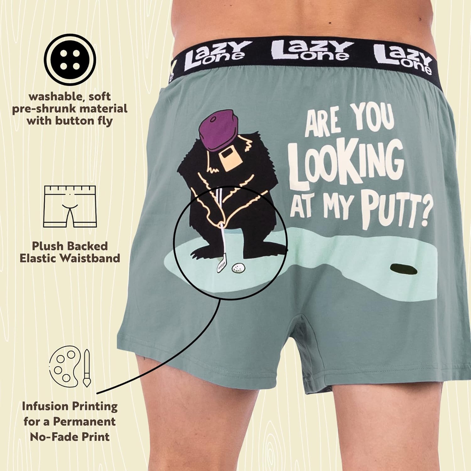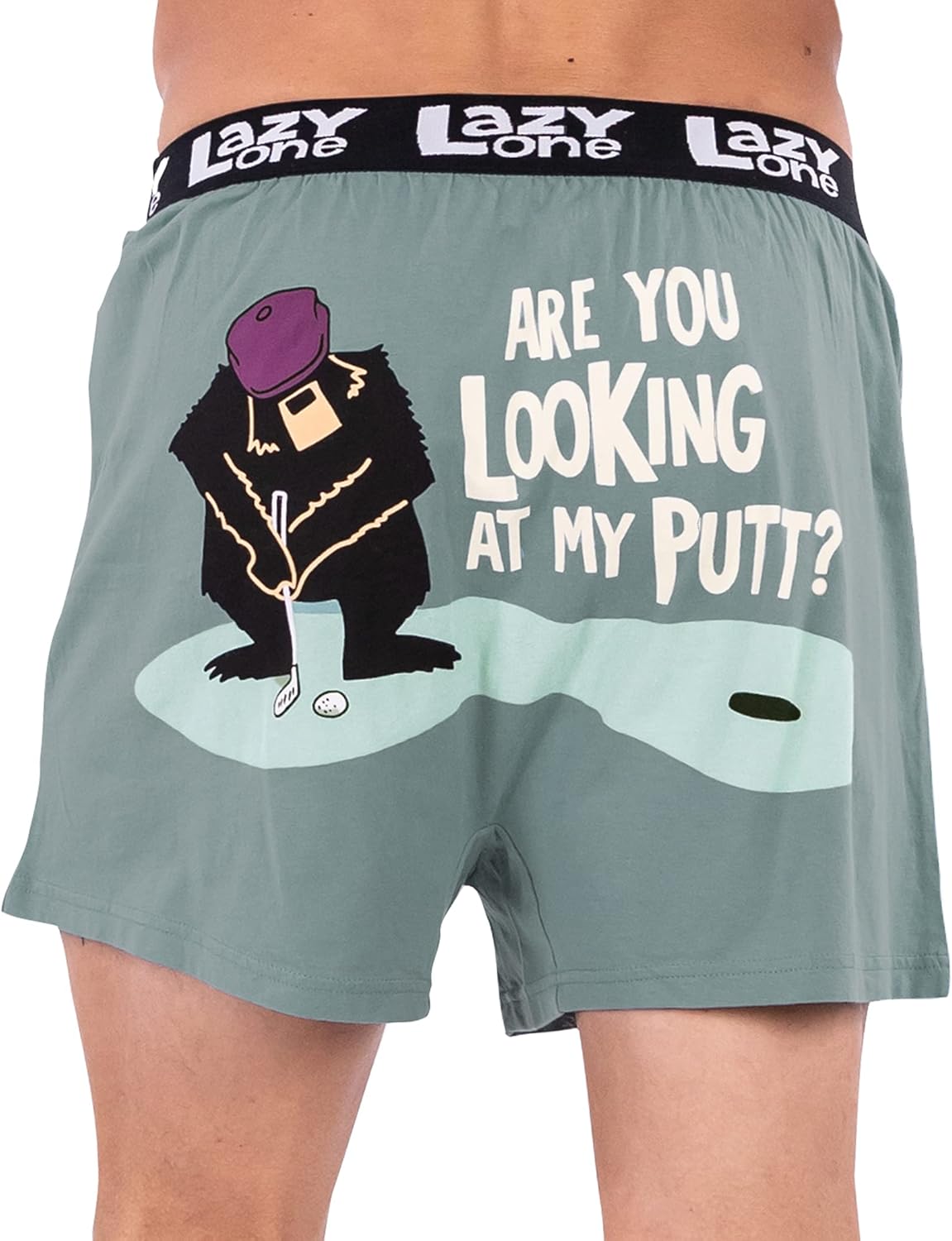 Lazy One Funny Animal Boxers, Novelty Boxer Shorts, Humorous Underwear, Gag Gifts for Men, Funny Bear Boxers(Looking at My Putt Boxers)