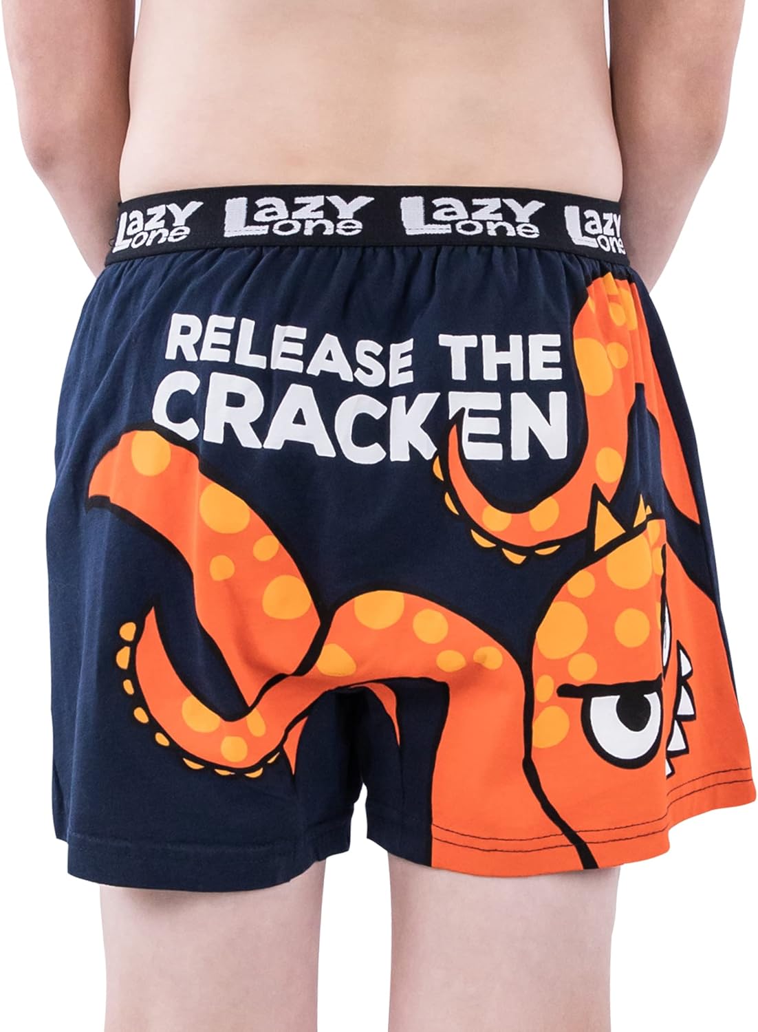 Lazy One Funny Animal Boxers, Novelty Boxer Shorts, Hunorous Kids’ Underwear, Gag Gifts for Boys(Kracken Kids Boxer)