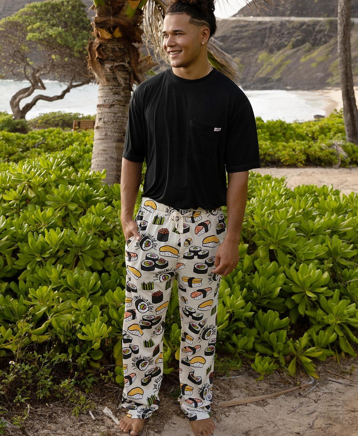 imageLazy One Funny Ocean Pajama Pants For Men Mens Separate Bottoms Lounge Pants Fishing PJsWhite Sushi Mens Pj Pant