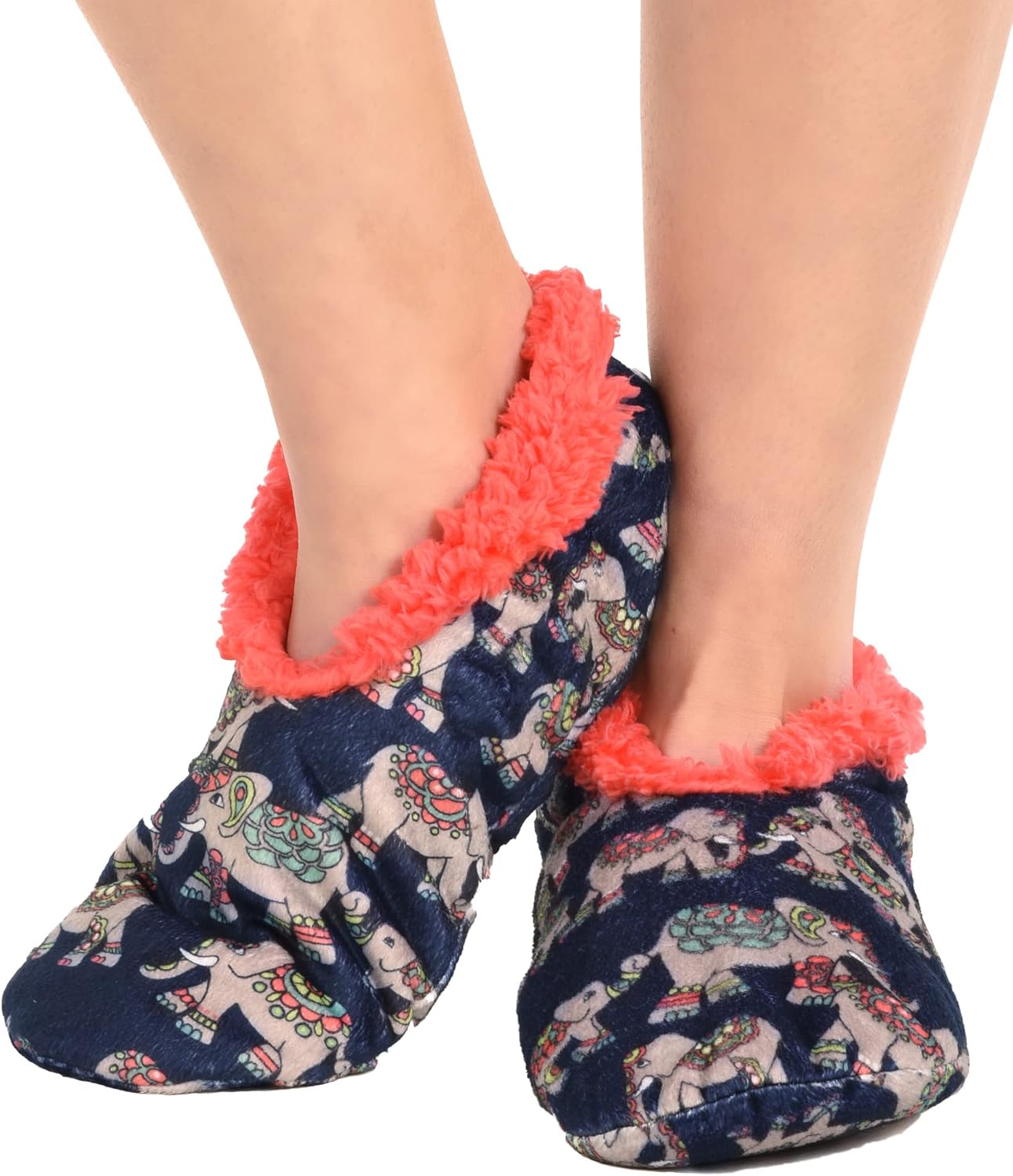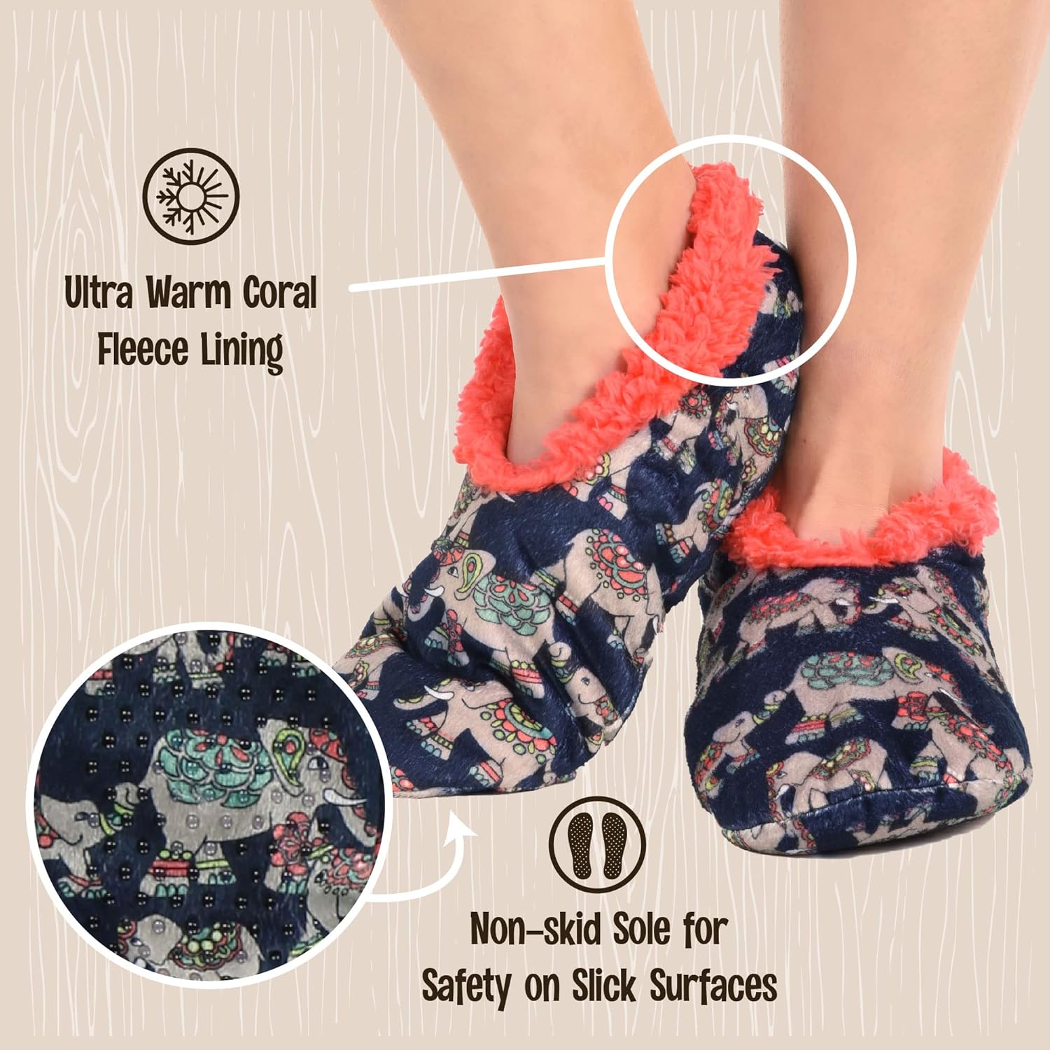 Lazy One Fuzzy Feet Slipper Socks for Women, Cute Fleece-Lined House Slippers, Cute Dog & Cat Design(Dream Big Elephant Fuzzy Feet)