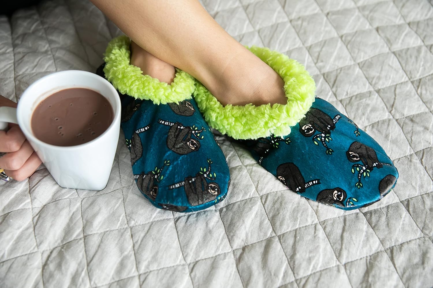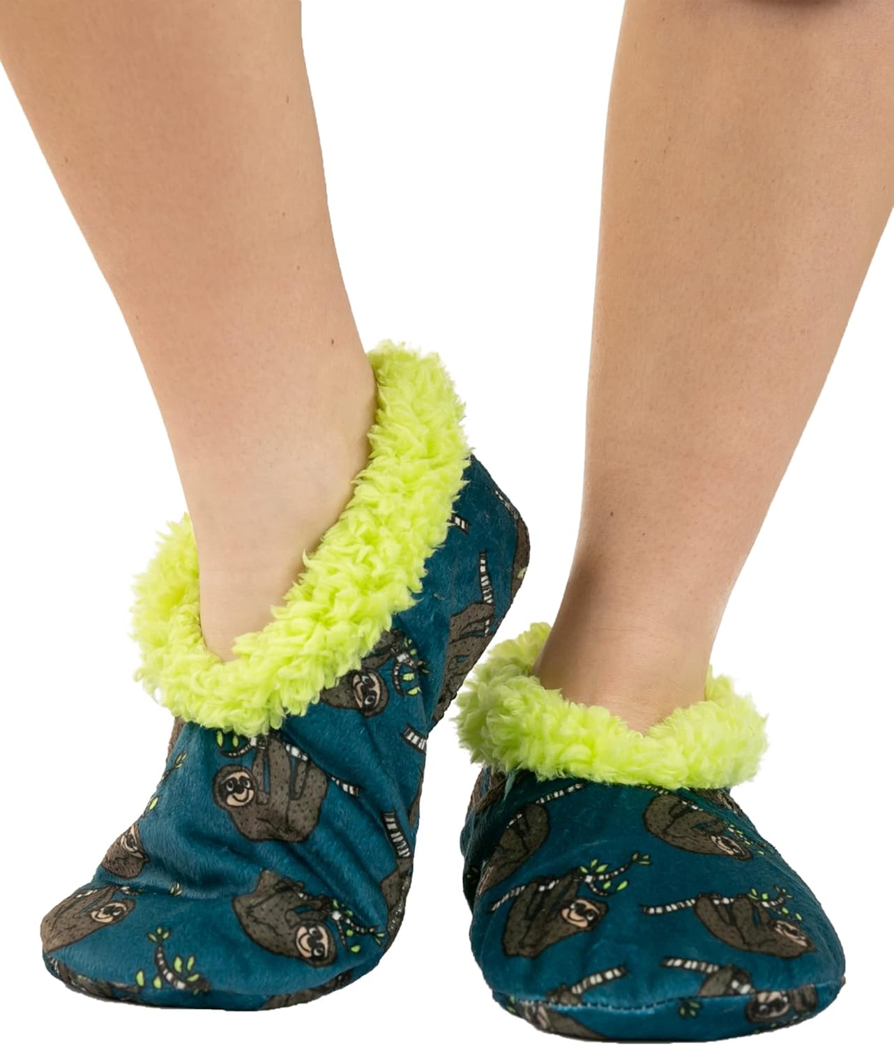 Lazy One Fuzzy Feet Slipper Socks for Women, Cute Fleece-Lined House Slippers, Cute Dog & Cat Design(Sloth Fuzzy Feet)