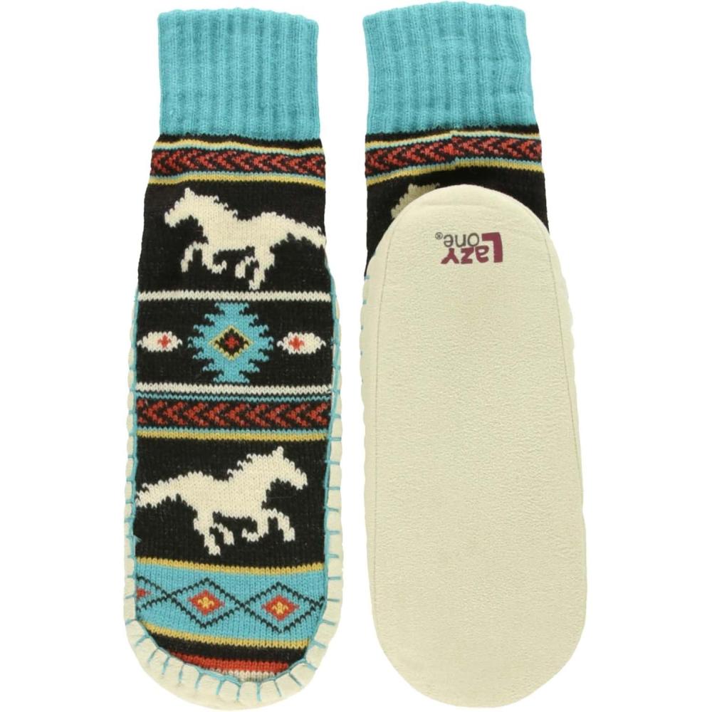 Lazy One Knitted Slippers, Cozy Slipper Socks for Women and Men(Horse Fair Isle Knitted Slipper Socks)