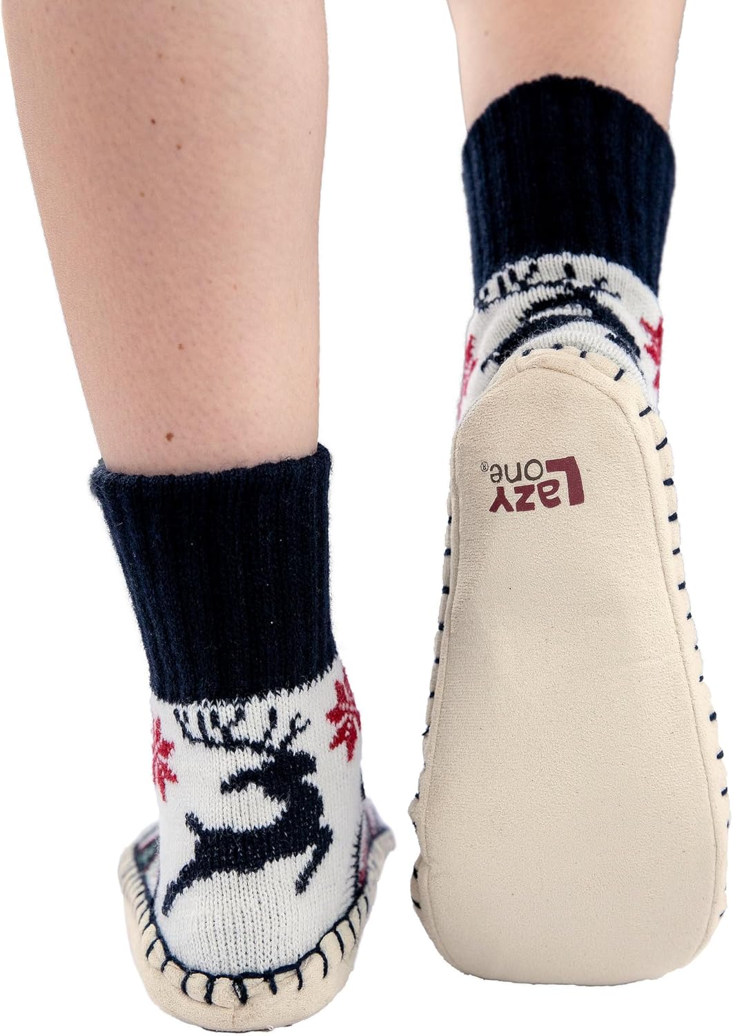 Lazy One Knitted Slippers Cozy Slipper Socks for Women and MenReindeer Fair Isle Knitted Slipper Socks