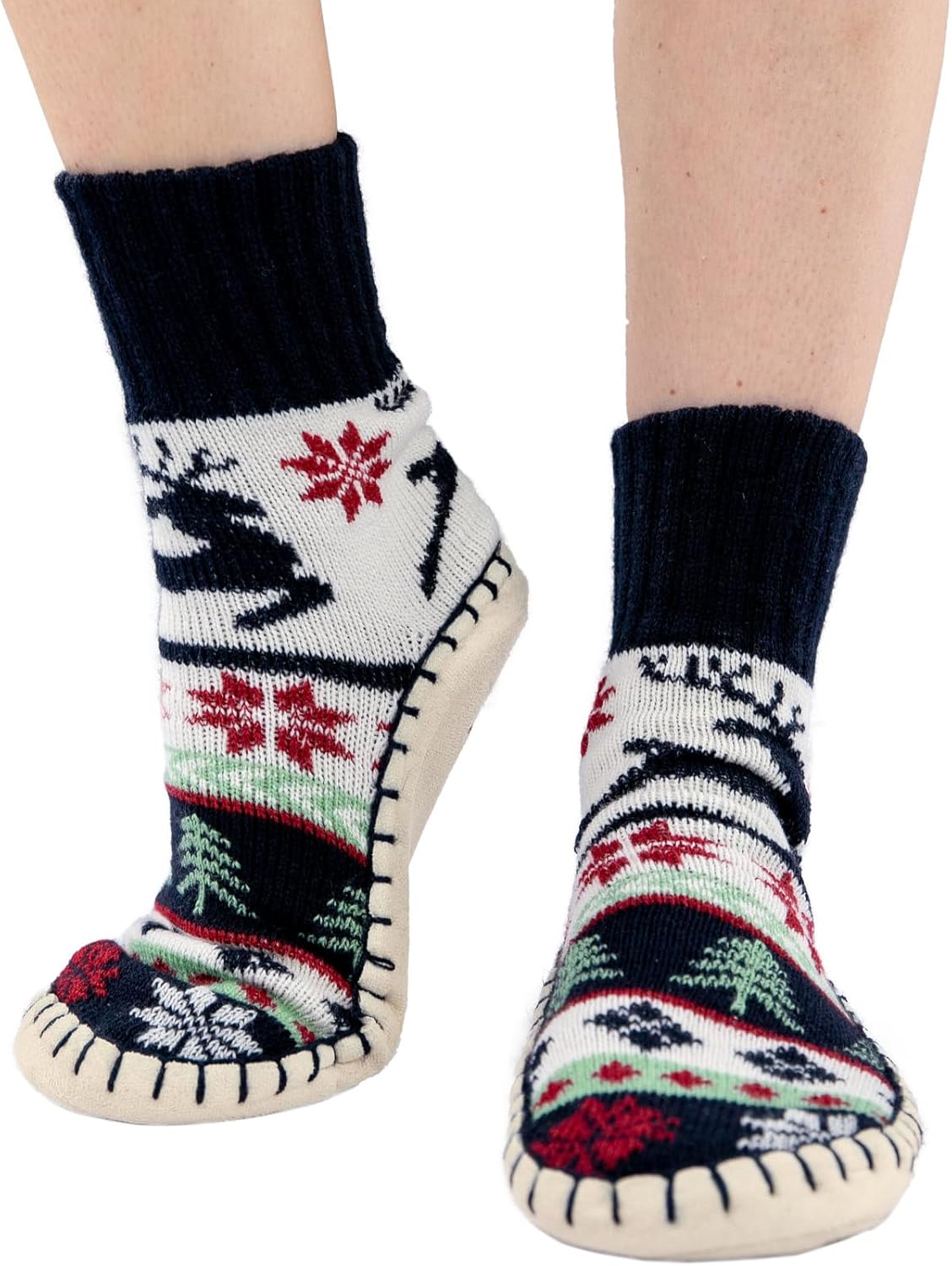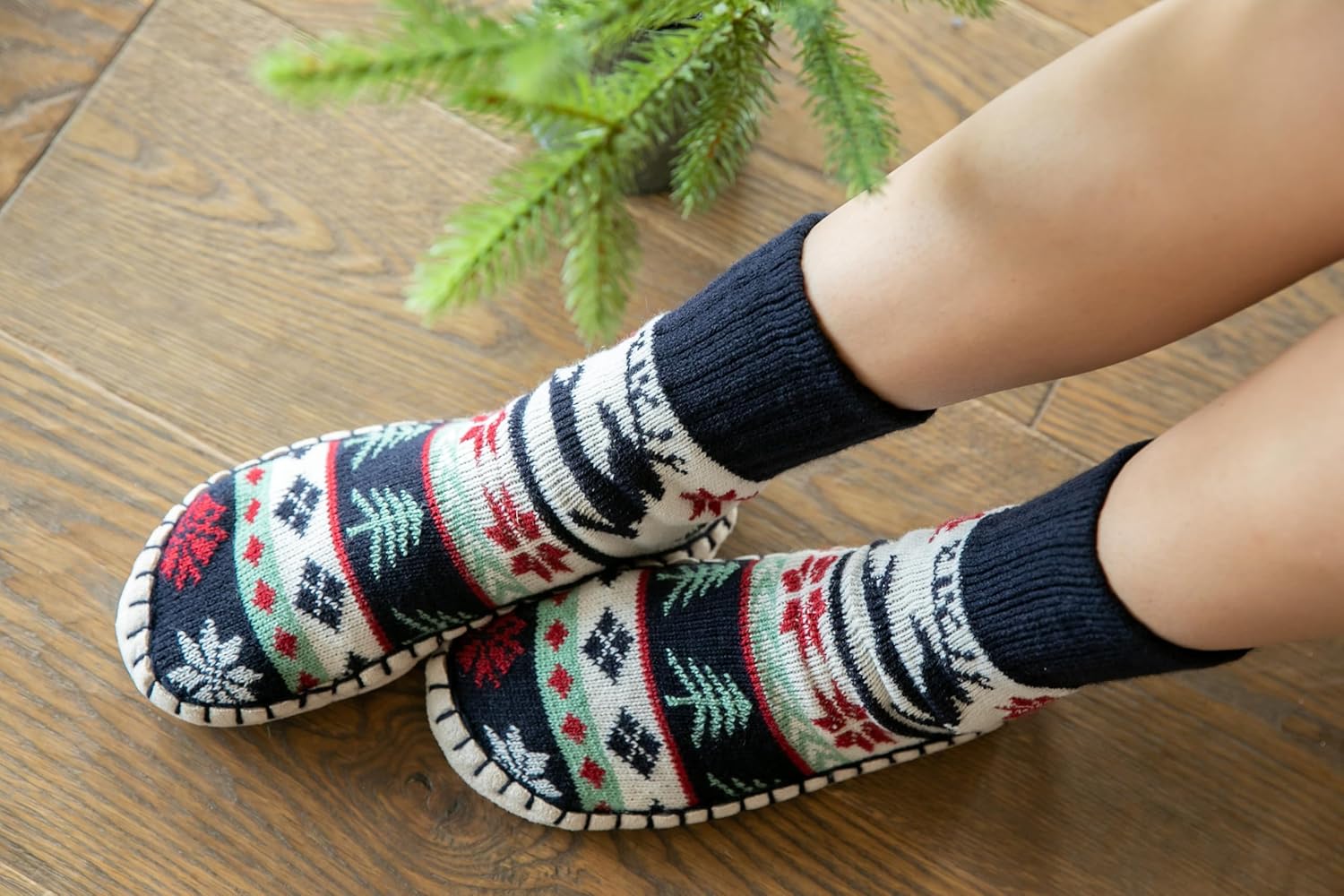 Lazy One Knitted Slippers Cozy Slipper Socks for Women and MenTree Fair Isle Knitted Slipper Socks
