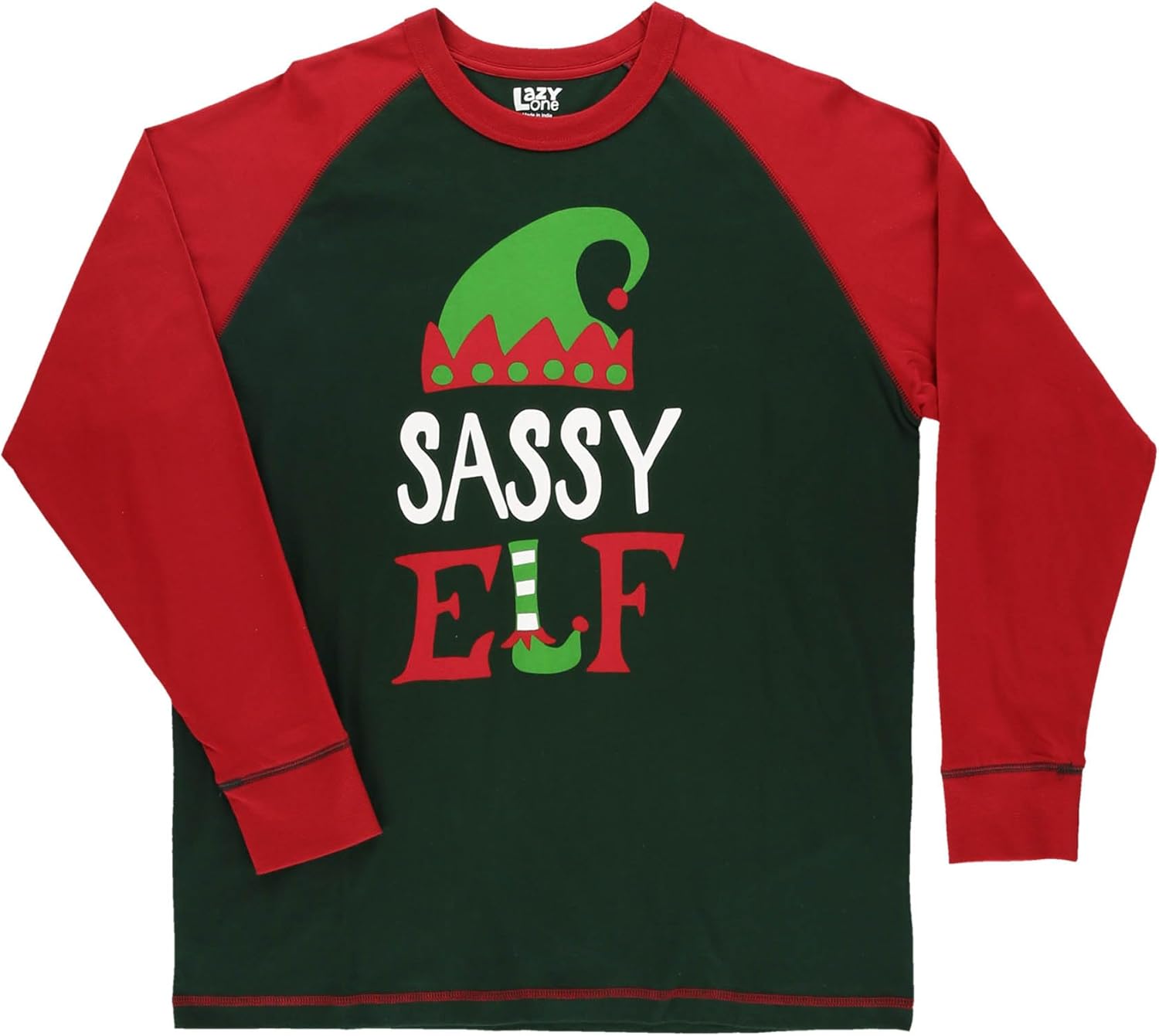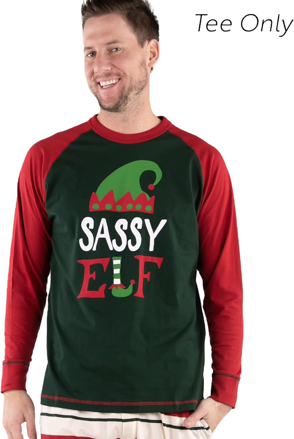 Lazy One Matching Family Christmas Pajamas Elf Matching Christmas PJs for Family Adult Tees ampamp Pants SeparatesSassy Elf Pajama Tee