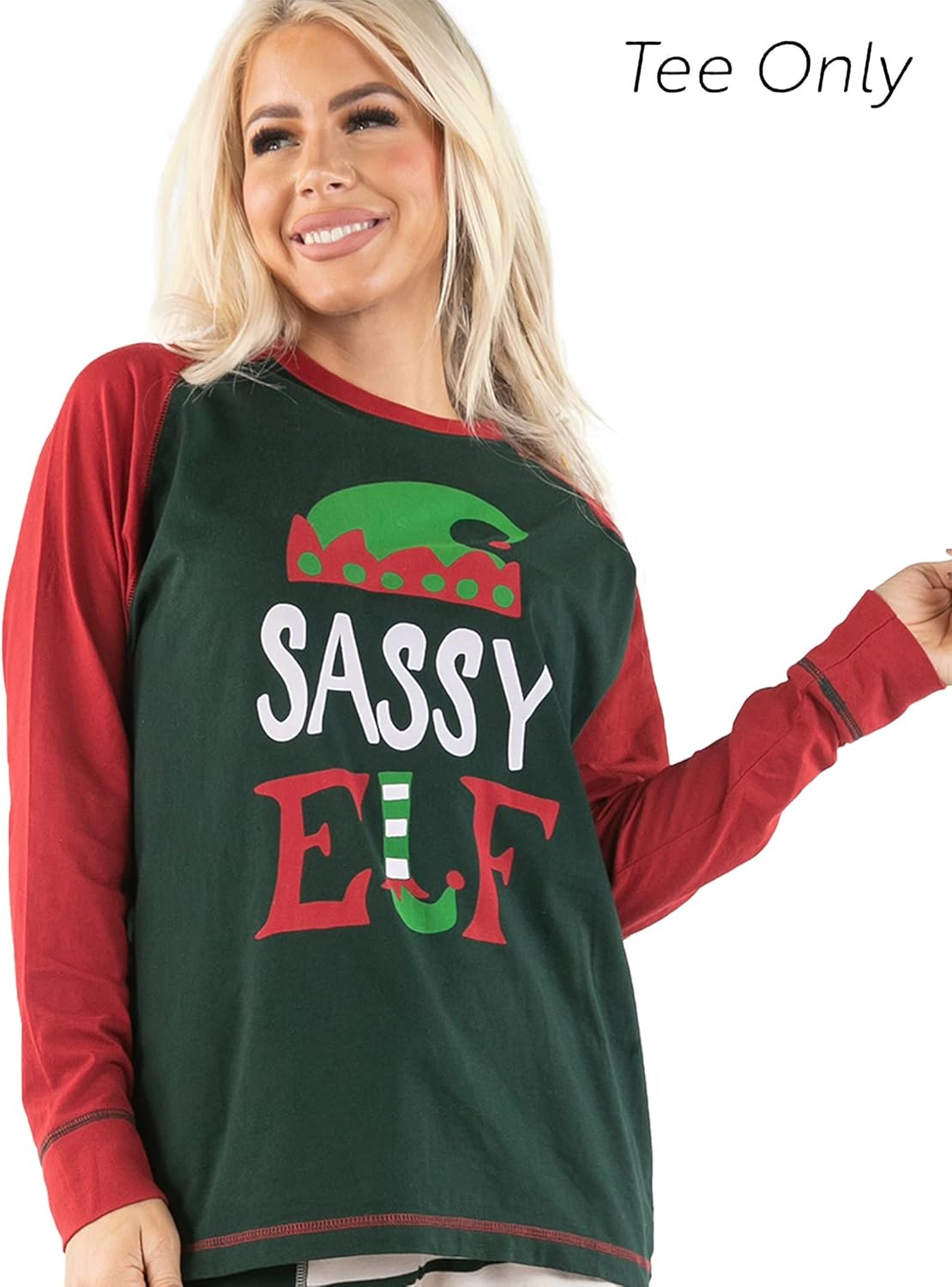 Lazy One Matching Family Christmas Pajamas, Elf Matching Christmas PJs for Family, Adult Tees & Pants Separates(Sassy Elf Pajama Tee)