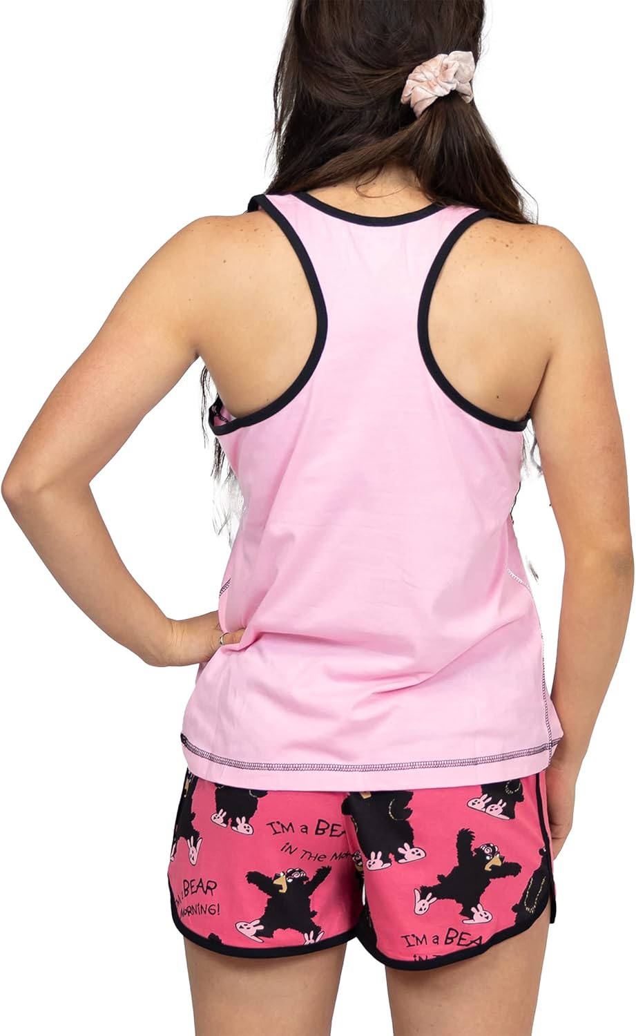 Lazy One Matching Pajamas for Women Cute Pajama Shorts and Tank Top Set Animal Bear in The Morning Medium