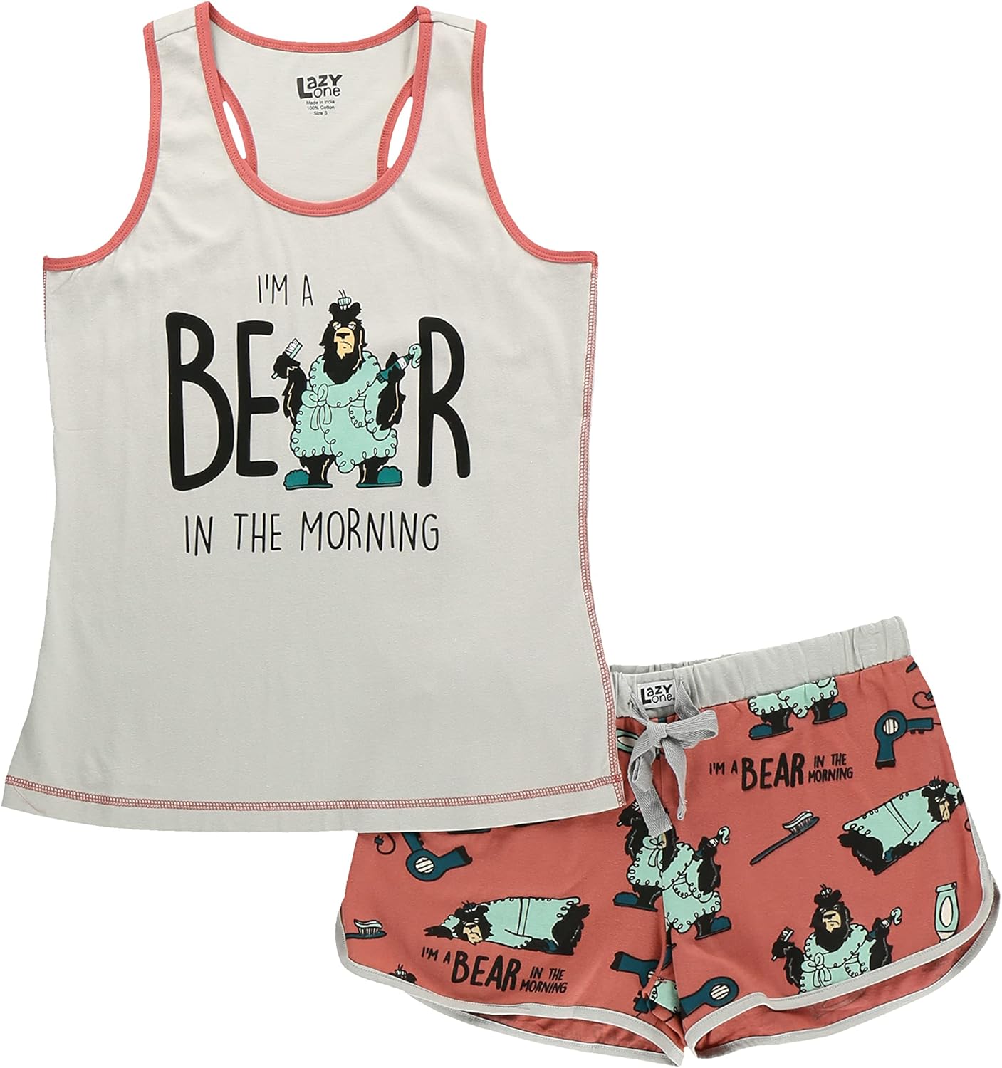 Lazy One Matching Pajamas for Women Cute Pajama Shorts and Tank Top Set Summer PajamasBear in Am