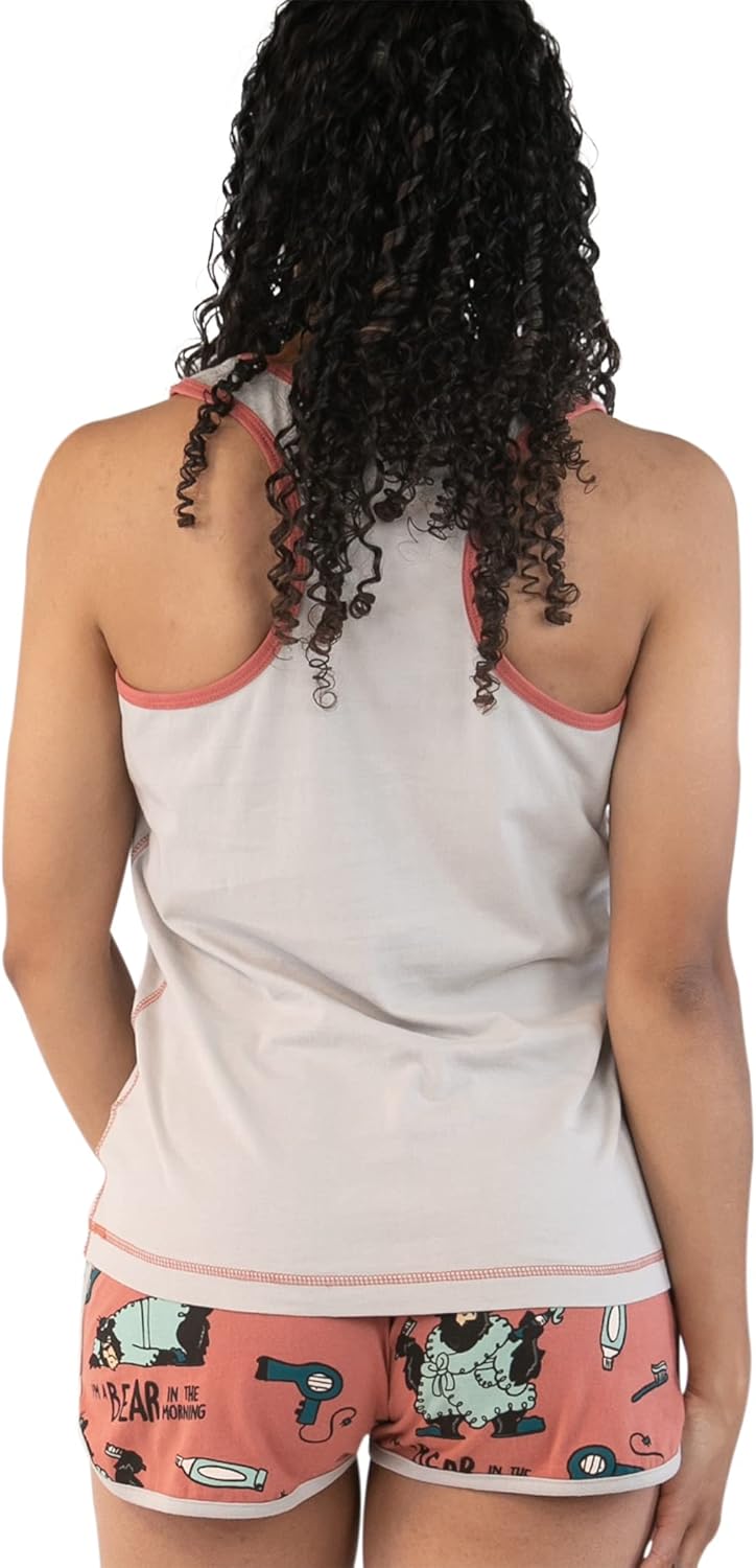 Lazy One Matching Pajamas for Women, Cute Pajama Shorts and Tank Top Set, Summer Pajamas(Bearly Awake Grey)