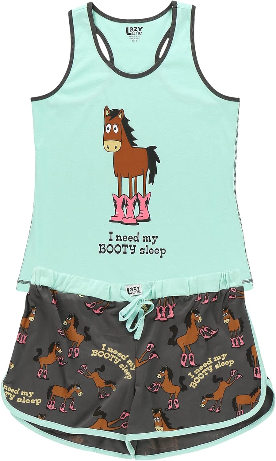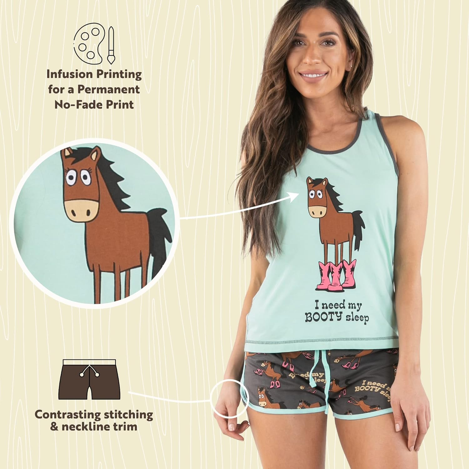 Lazy One Matching Pajamas for Women, Cute Pajama Shorts and Tank Top Set, Summer Pajamas(Booty Sleep)