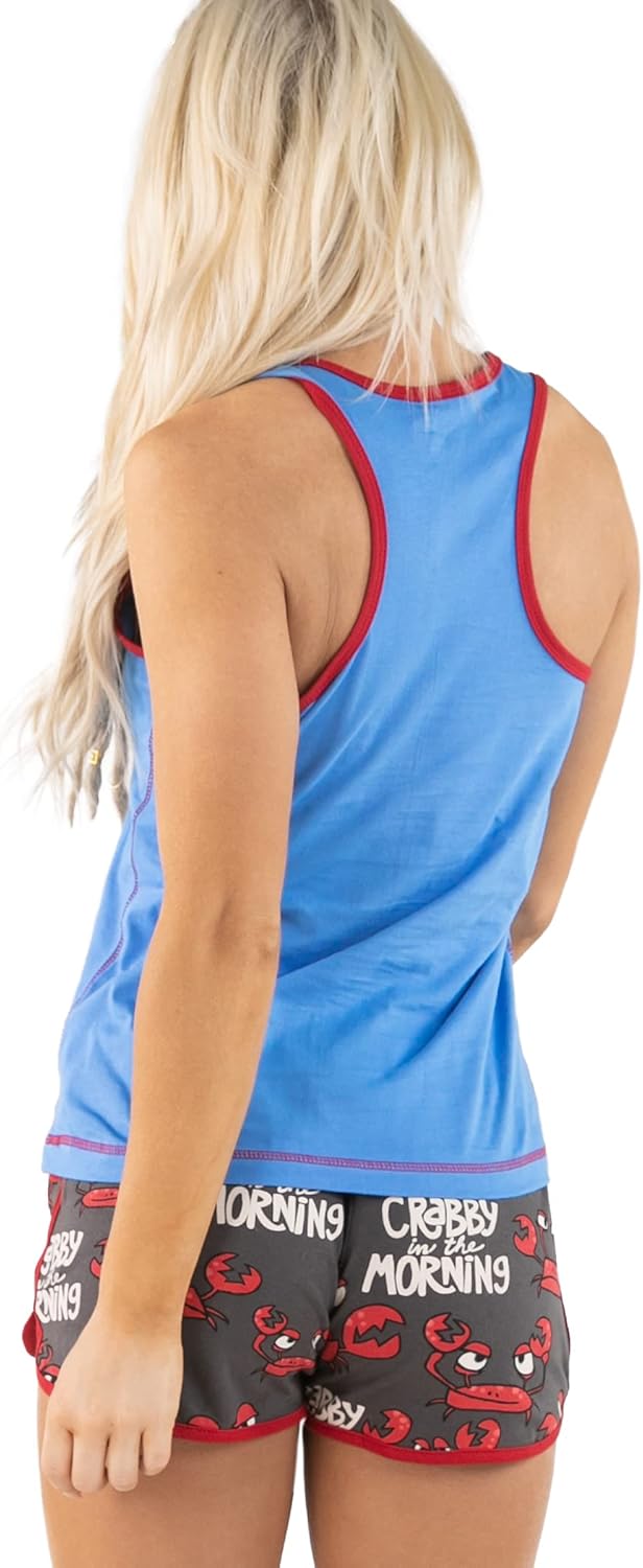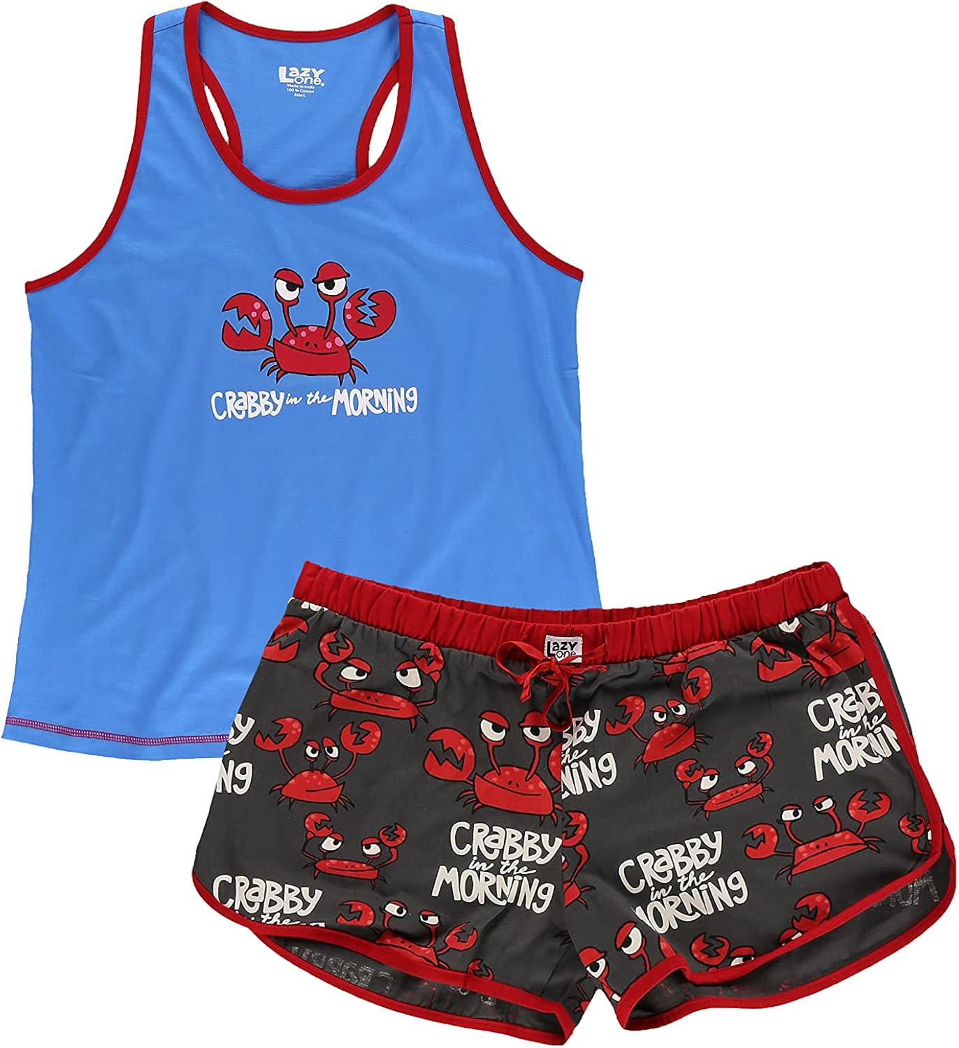 Lazy One Matching Pajamas for Women, Cute Pajama Shorts and Tank Top Set, Summer Pajamas(Crabby in the Morning)