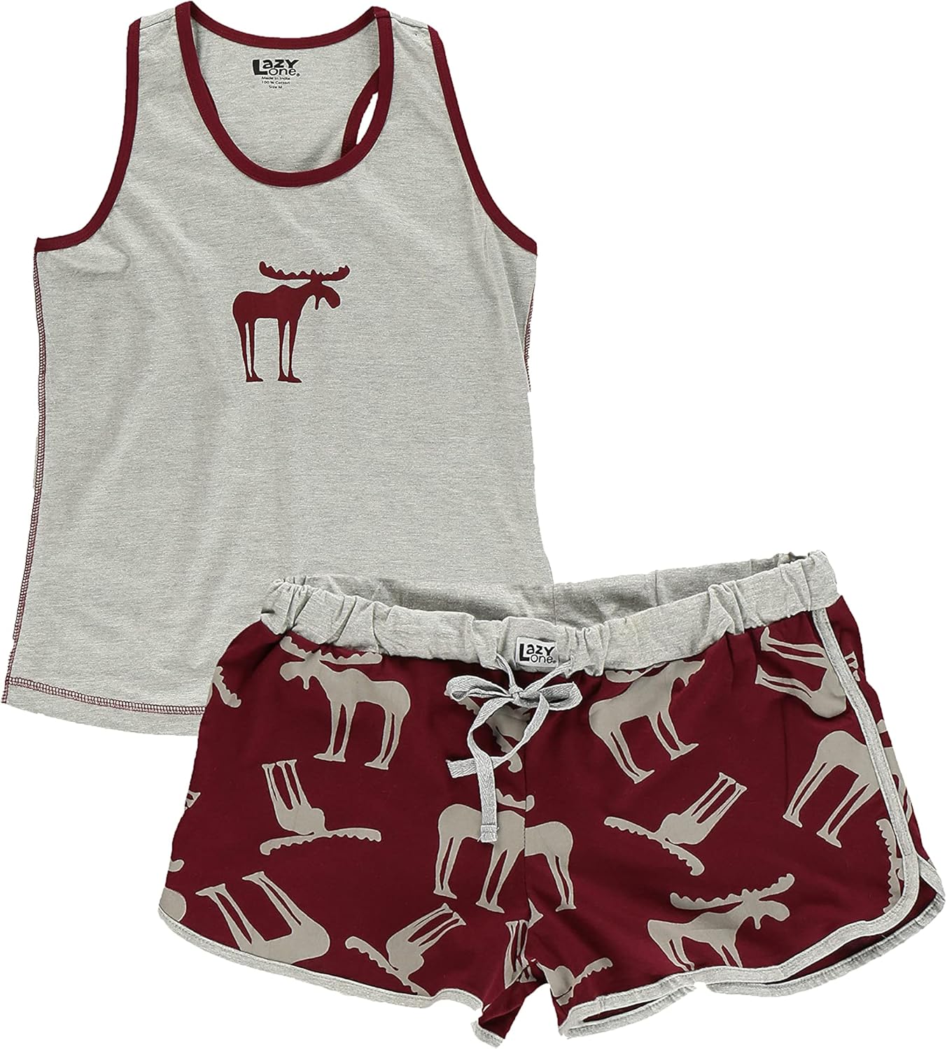 Lazy One Matching Pajamas for Women, Cute Pajama Shorts and Tank Top Set, Summer Pajamas(Funky Moose)