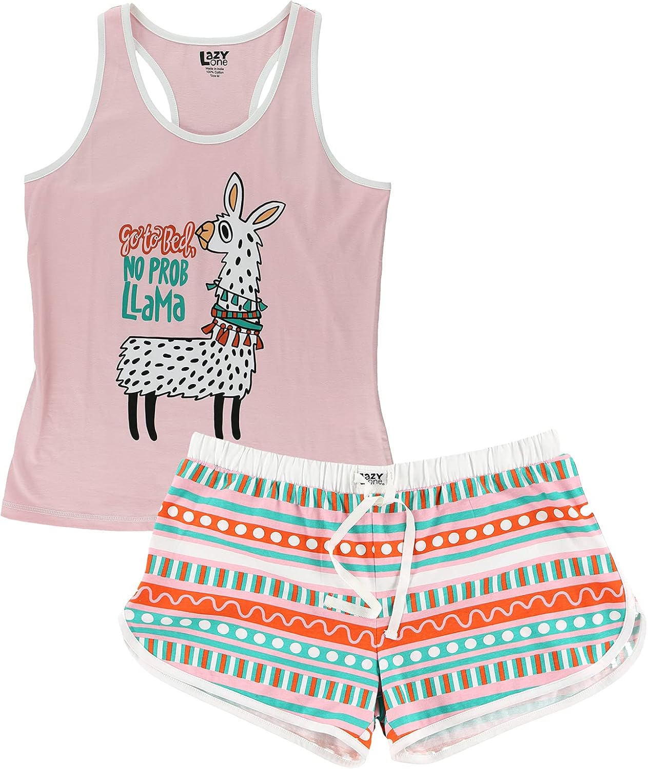 Lazy One Matching Pajamas for Women, Cute Pajama Shorts and Tank Top Set, Summer Pajamas(No Probllama)