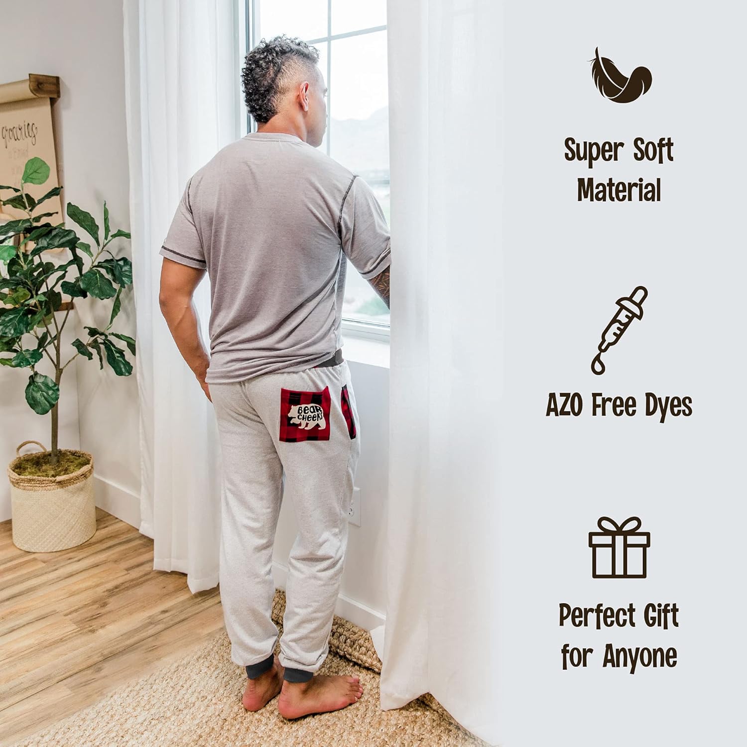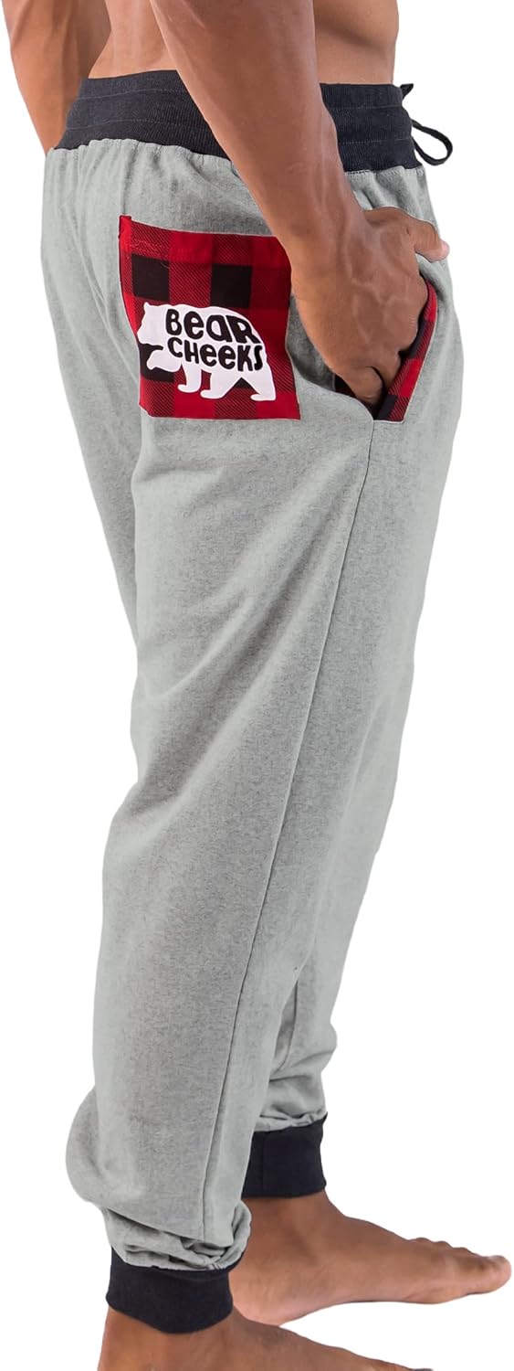 Lazy One Men's Jogger Sweatpants, Cozy, Warm, Pockets(Bear Cheeks Mens Jogger)