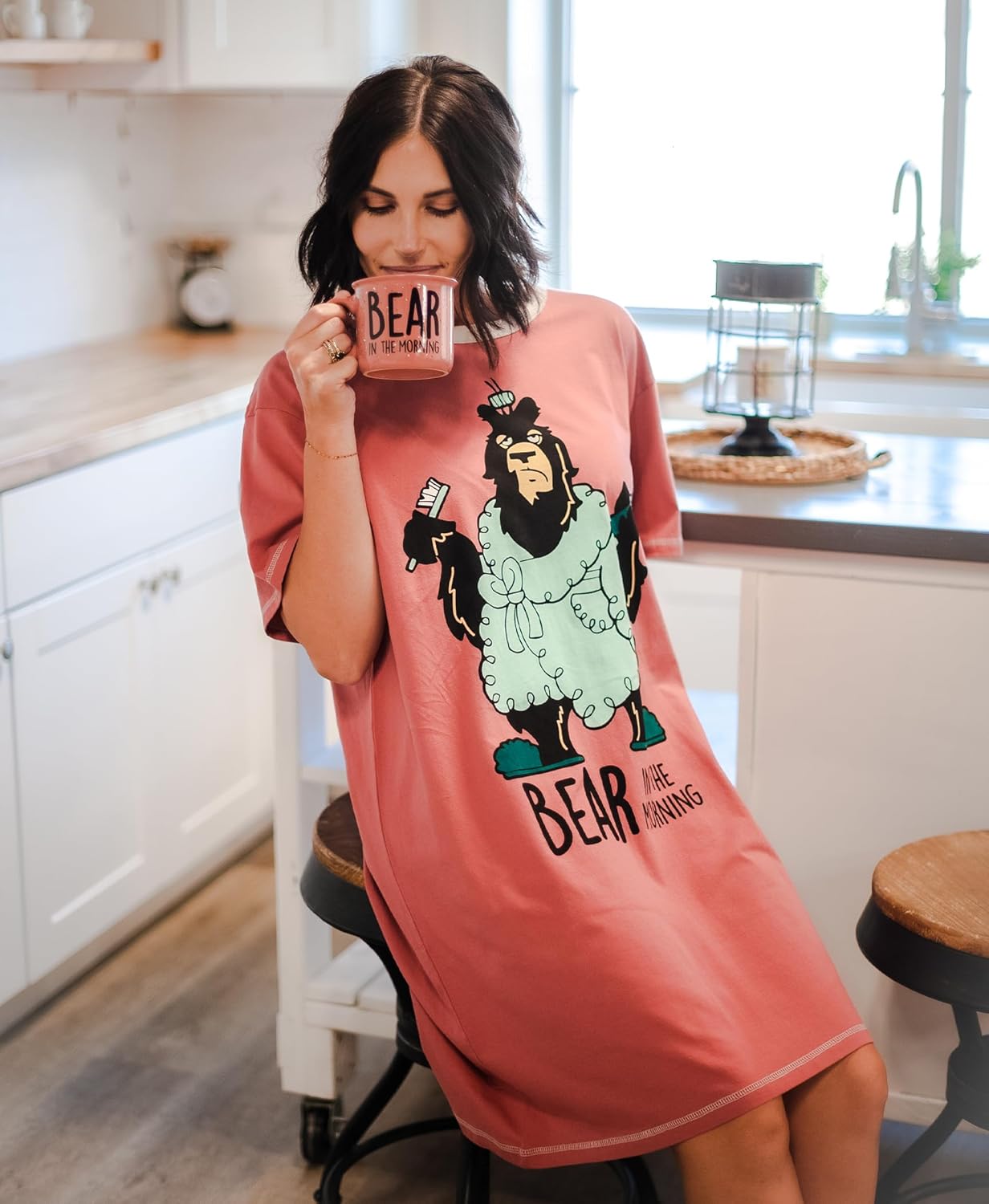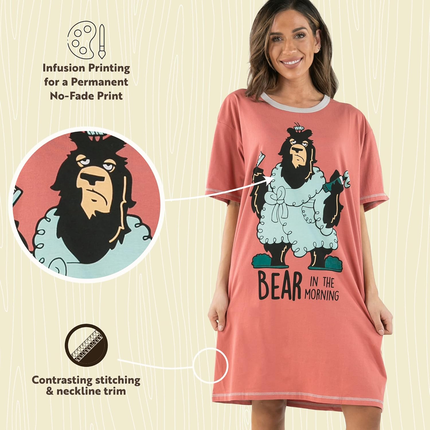 Lazy One Nightshirts for Women Cute Nightgown for Women Animal DesignsBear in Am Nightshirt