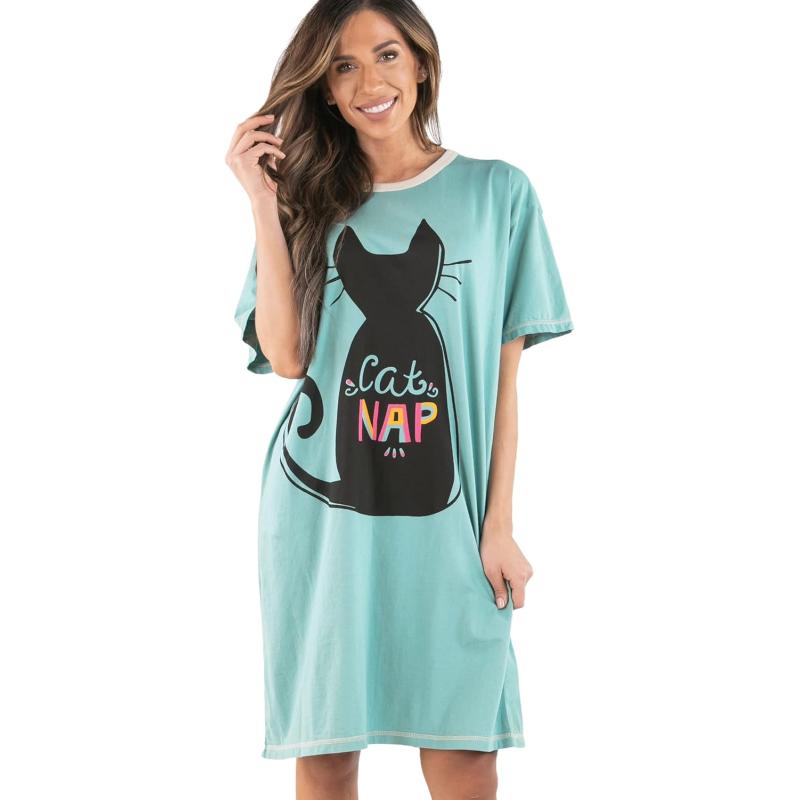 Lazy One Nightshirts for Women Cute Nightgown for Women Animal DesignsCat Nap Blue Nightshirt