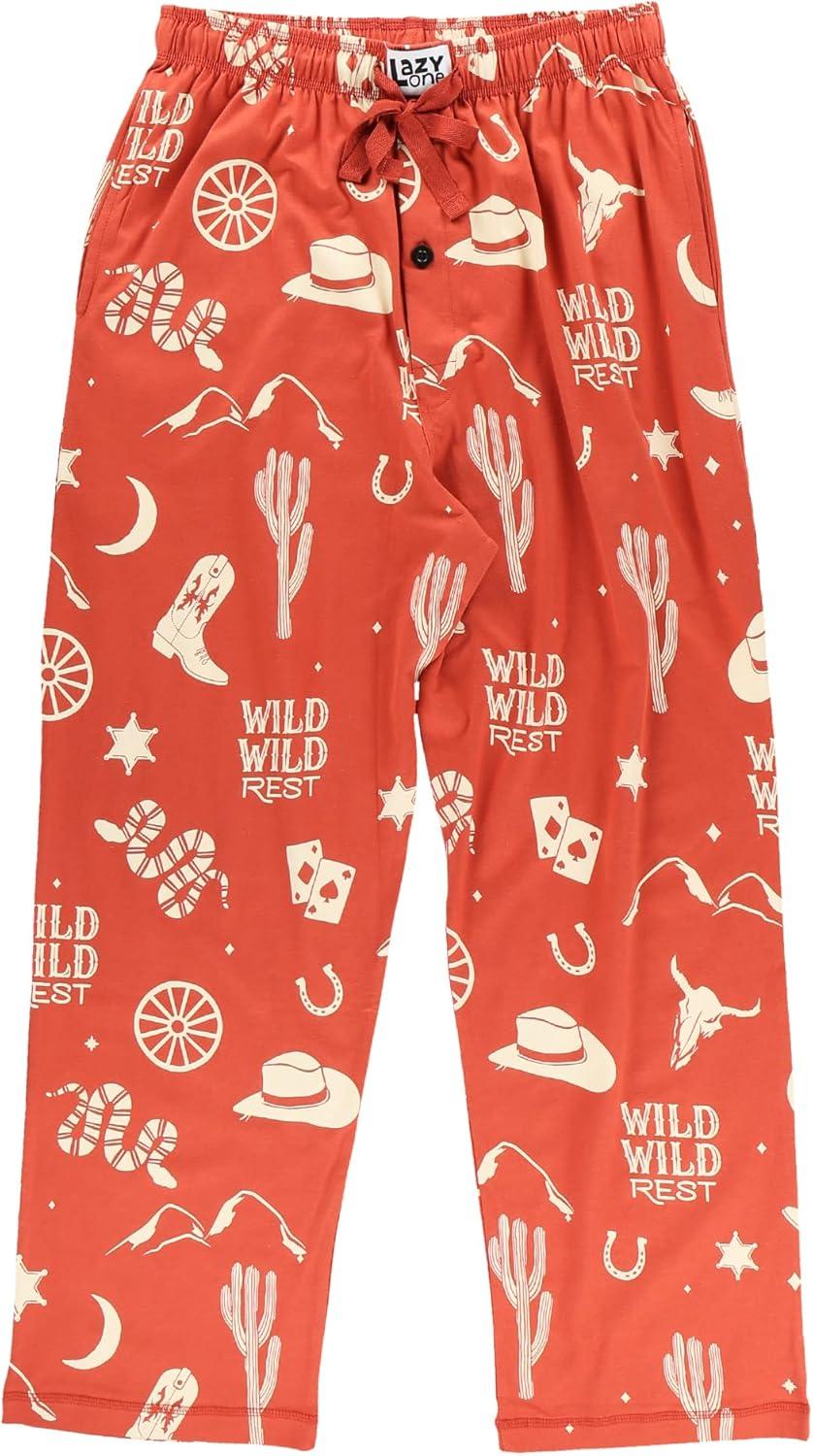 Lazy One Novelty Pajama Pants For Men, Men's Separate Bottoms, Lounge Pants, Funny(Wild Wild Rest Orange Pajama Pants)