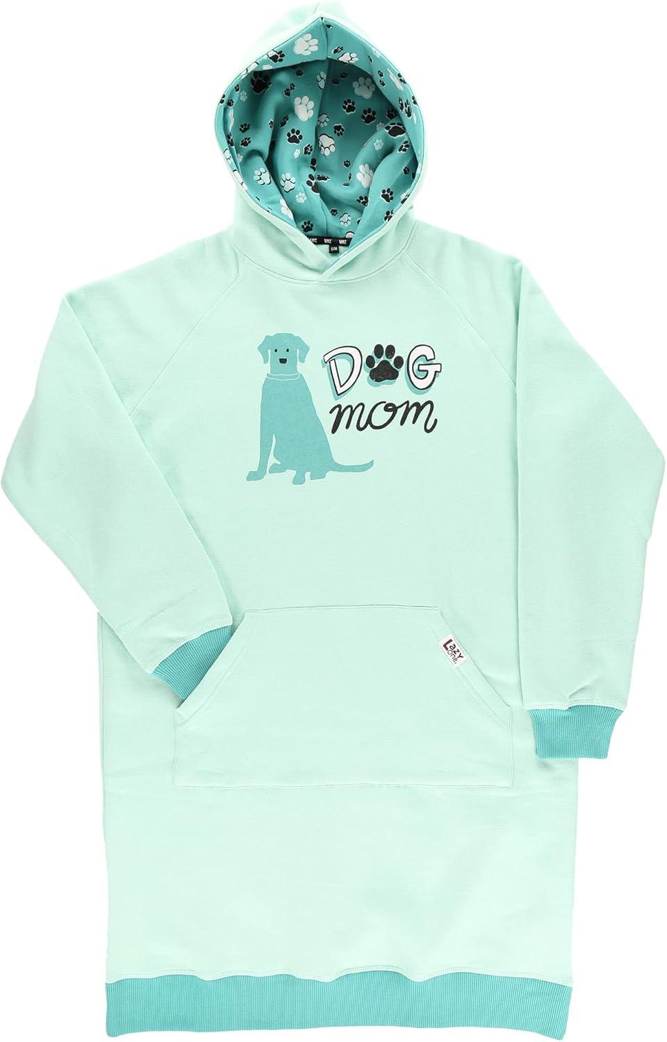 Lazy One Oversized Hoodie Sweatshirt, Comfortable Sleepwear, Sweater Dress For Women(Dog Mom Sleep Hoodie)