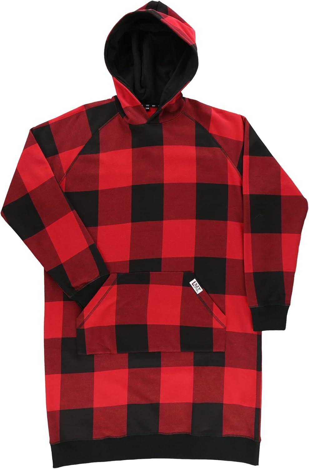 Lazy One Oversized Hoodie Sweatshirt, Comfortable Sleepwear, Sweater Dress For Women(Red Plaid Sleep Hoodie)