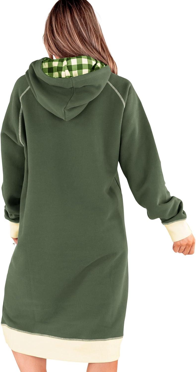 Staying warm and cozy in the winter is essential. Whether you are reading a book by a fire, drinking cocoa with your family, or snuggling up next to your pet, you want to be cozy at all times! With our hooded sweater dress, you can do all of that while staying flexible and mobile. This comfortable nightgown for women can replace your traditional robes and pajamas and keep you warm from your fingers to your ears with the pocket and hood. Our knee-length hooded dress has long sleeves to keep your arms toasty while giving you more freedom of movement than a blanket. It can be a sleep dress or daily lounge dress that you can put on after a hard day's work. Wear it while you work from home so you can look festive and not feel guilty about how comfortable you really are! The loose fit of our oversized sweatshirts for women makes them great for all sizes. Coming in sizes of S/M and L/XL, it will fit great for nearly anyone! Adults and teens will love this fashionable hoodie. The cute designs with moose, bears, elves, bigfoot, camping, dogs, cats, Alaska, Canada, lobsters, and so many more. They also come with patterns and funny phrases for any occasion. Put this in your collection of comfy dresses and have it to choose from for any sweater party or for family pajama photos. Sleep in luxury with our soft, oversized hoodie as it makes the perfect addition to your cold-weather nightgowns and pajama sets. The convenient pocket and hood will also make you feel even more comfortable. The preshrunk cotton and polyester fabric are easy to care for and will last you a long time. Make someone's Christmas, Birthday or any day special and gift it to a loved one who wants to get in the holiday spirit!