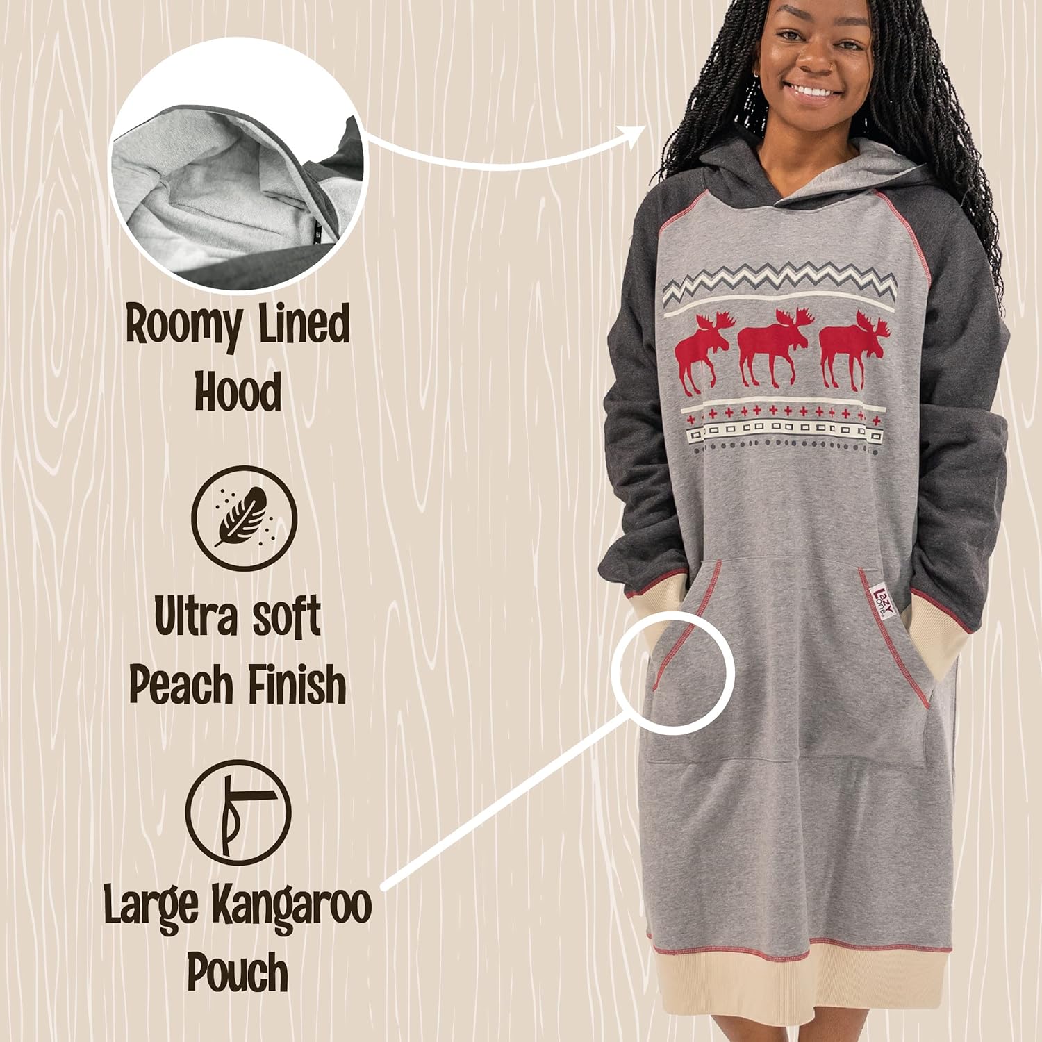 Lazy One Oversized Hoodie Sweatshirt, Comfortable Sleepwear(Cabin Moose Sleep Hoodie)