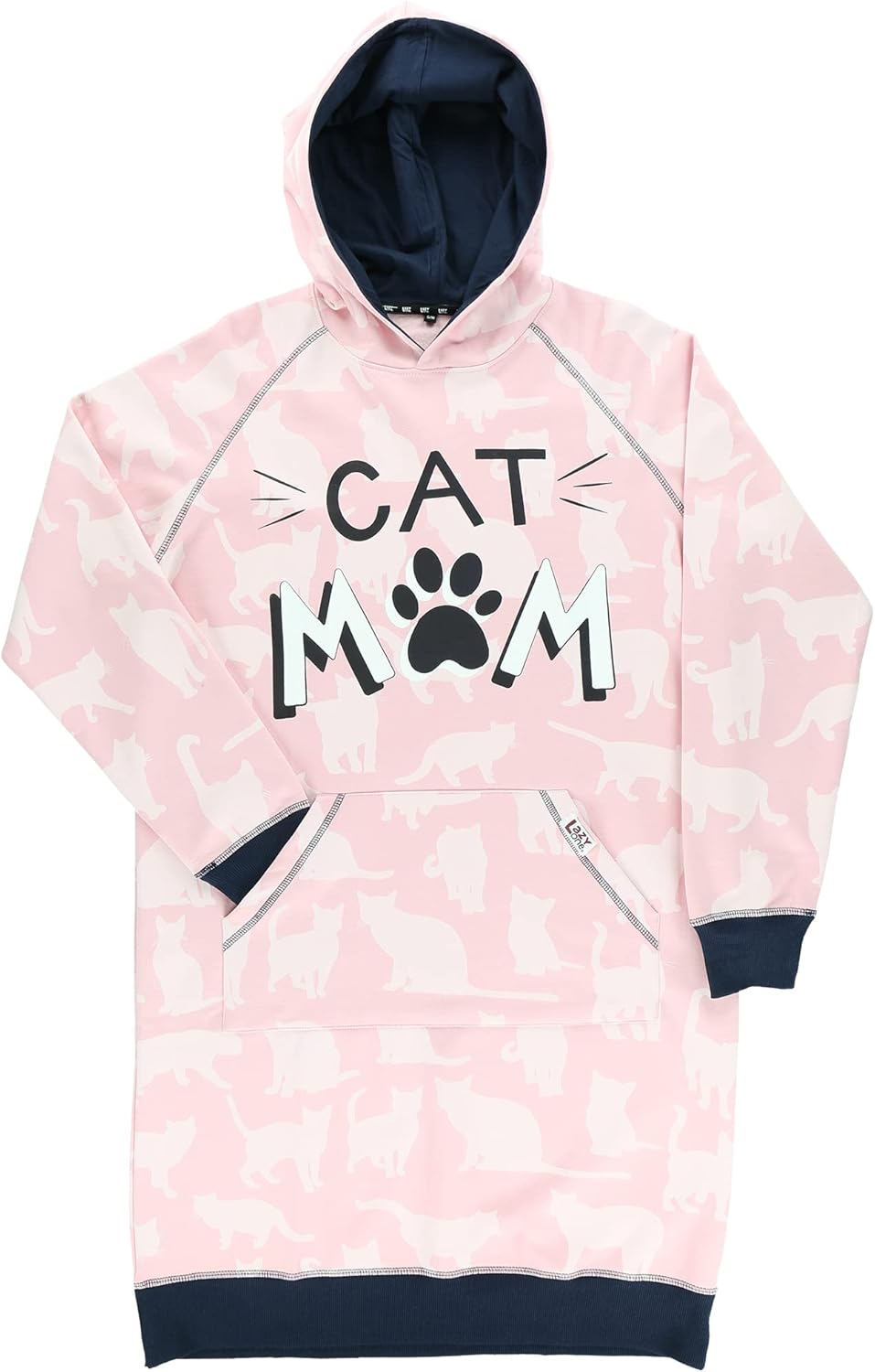 Lazy One Oversized Hoodie Sweatshirt Comfortable SleepwearCat Mom Sleep Hoodie