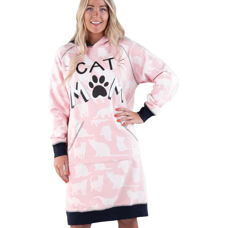 Lazy One Oversized Hoodie Sweatshirt, Comfortable Sleepwear(Cat Mom Sleep Hoodie)