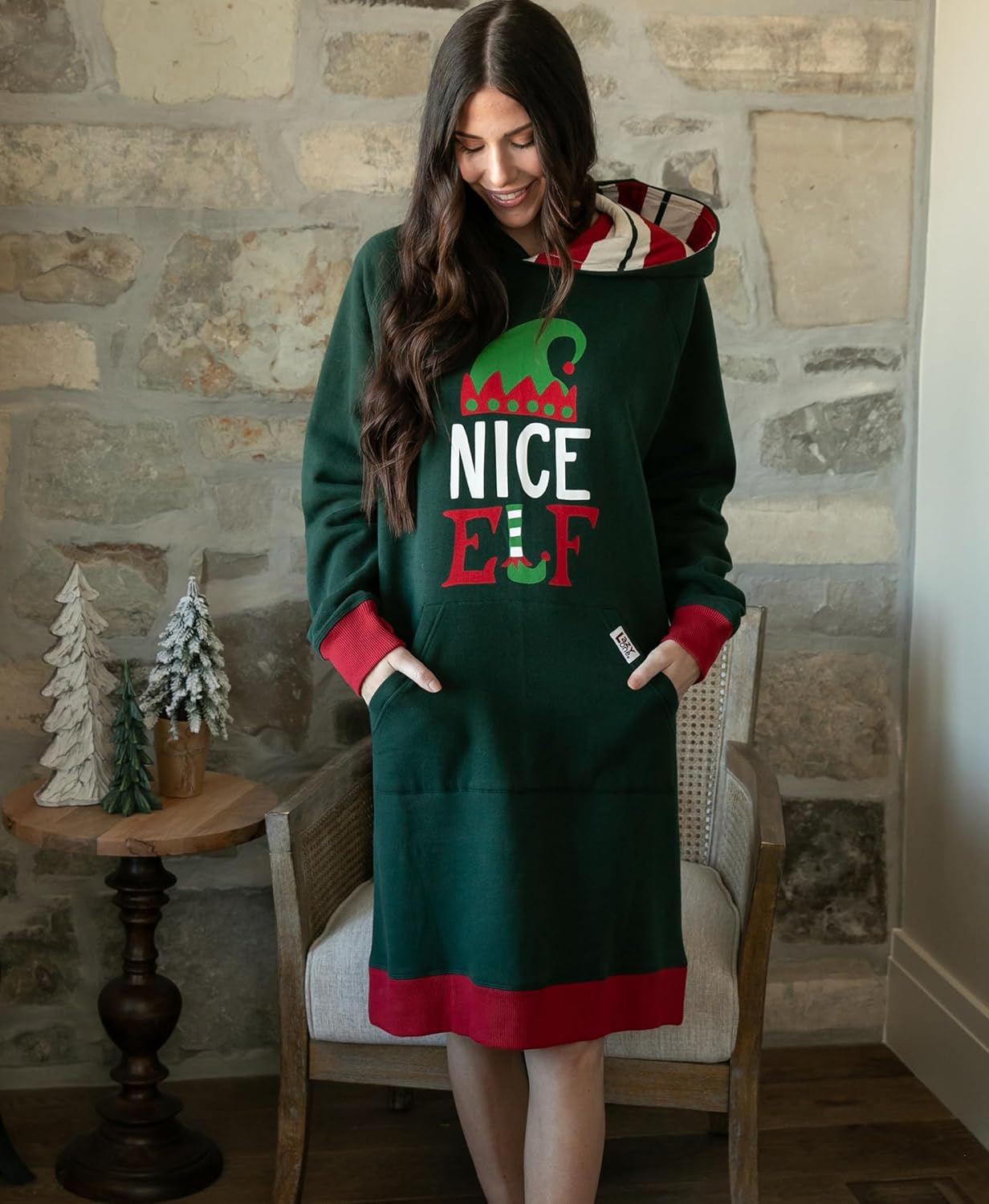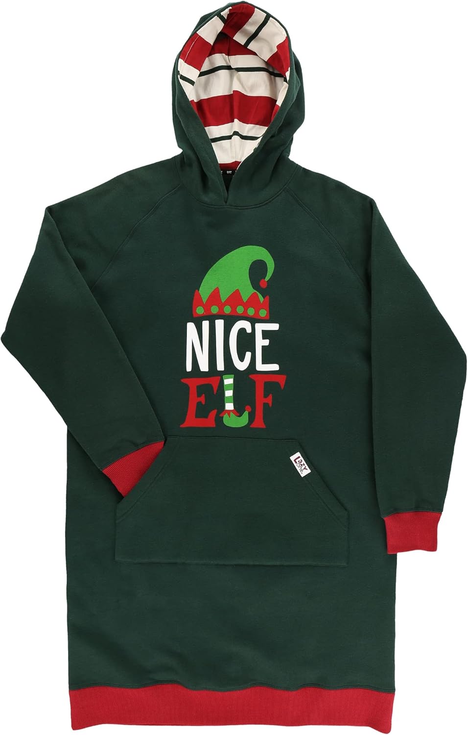 Lazy One Oversized Hoodie Sweatshirt, Comfortable Sleepwear(Nice Elf Sleep Hoodie)