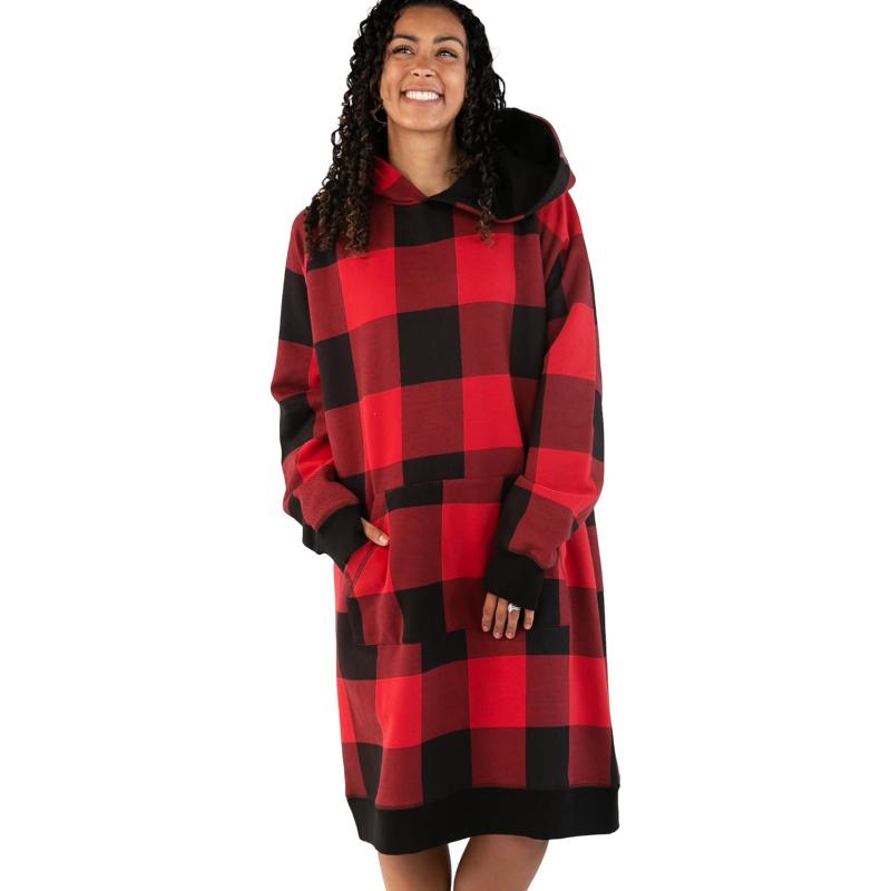 Lazy One Oversized Hoodie Sweatshirt, Comfortable Sleepwear(Red Plaid Sleep Hoodie)