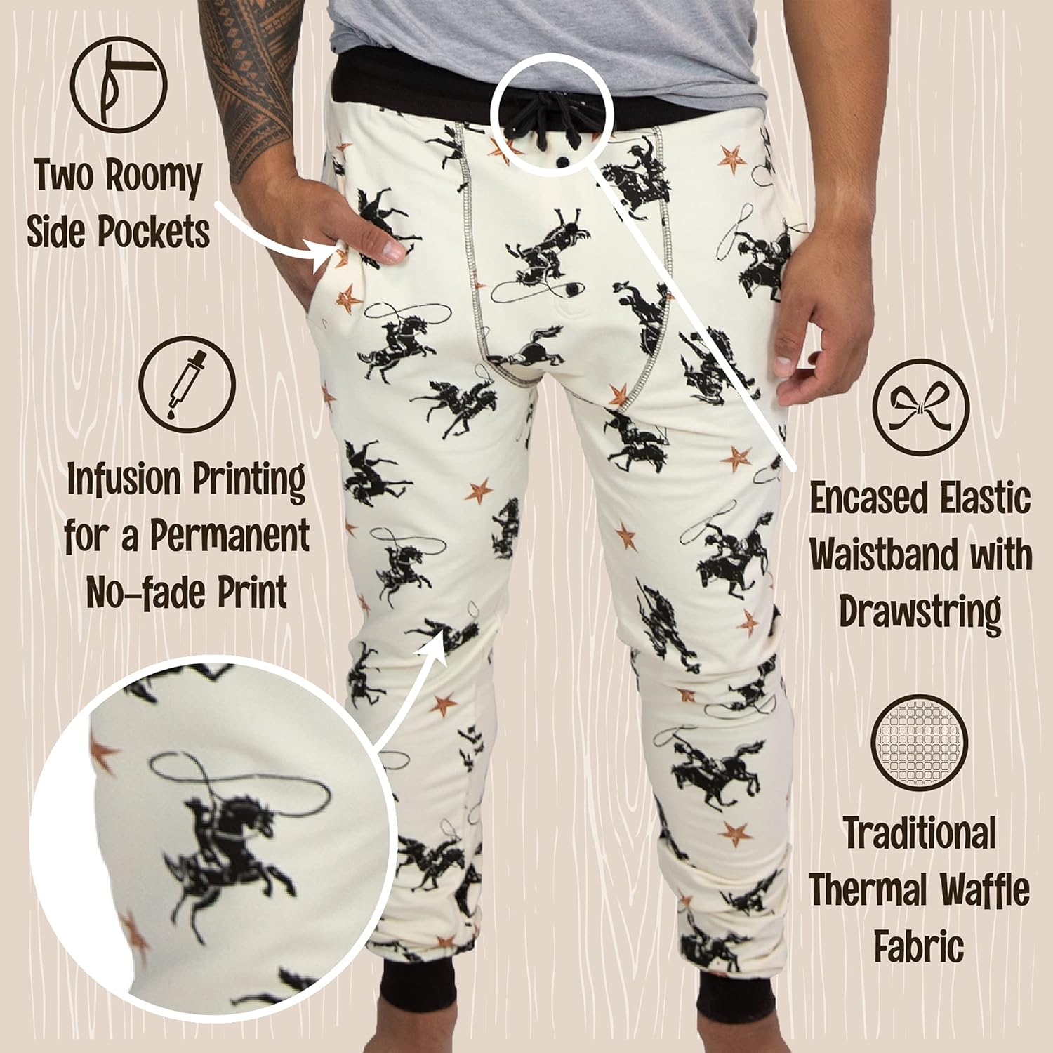 Lazy One Pajama Pants for Men Cotton Long Johns for MenCowboy Long John