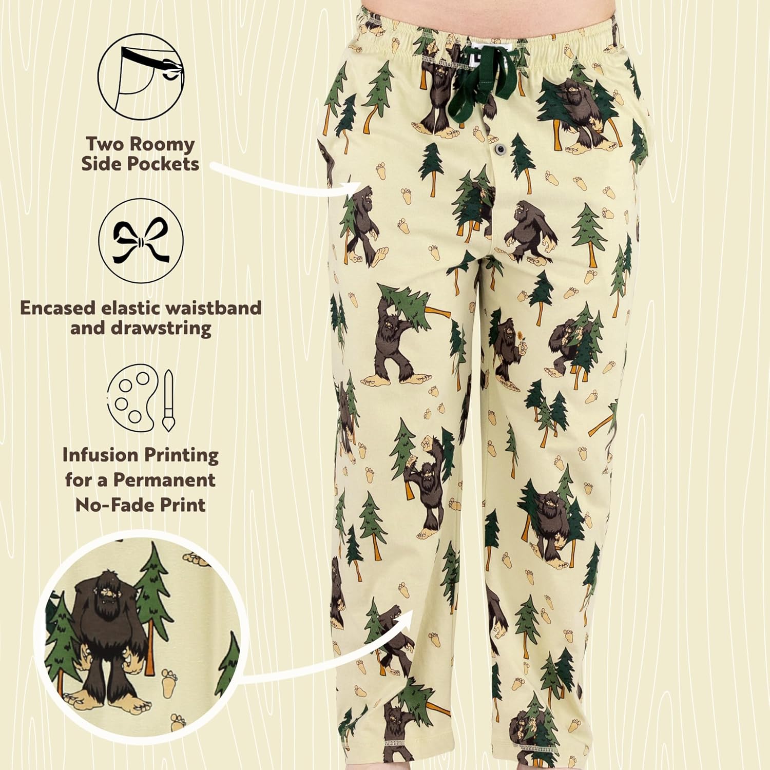 Lazy One Pajama Pants For Men, Men's Separate Bottoms, Lounge Pants, Funny, Humorous(Bigfoot Pajama Pants)