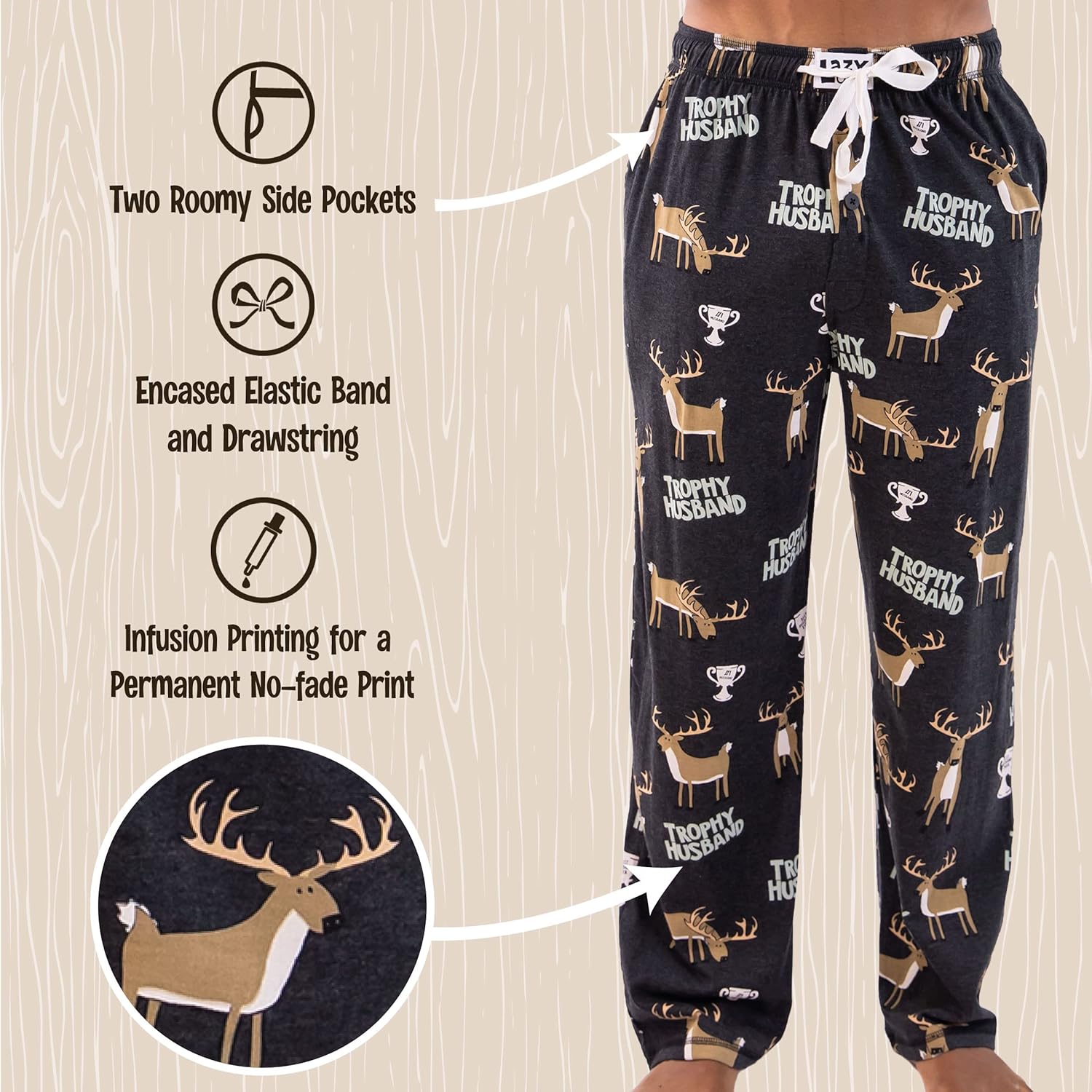 Lazy One Pajama Pants For Men Mens Separate Bottoms Lounge Pants FunnyDark Gray Trophy Husband Dark Gray Pajama Pants